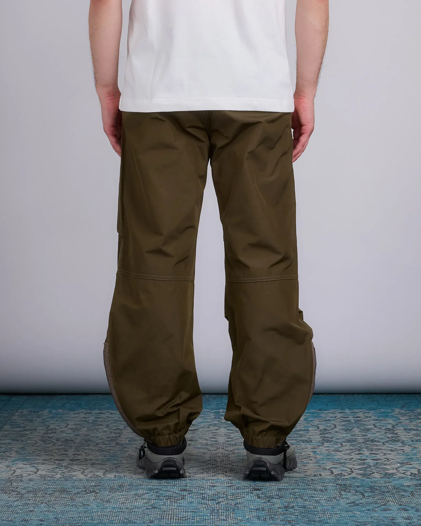 Trousers with zipper at the bottom inspired by military trousers. The brushed high-density material also has water repellency.