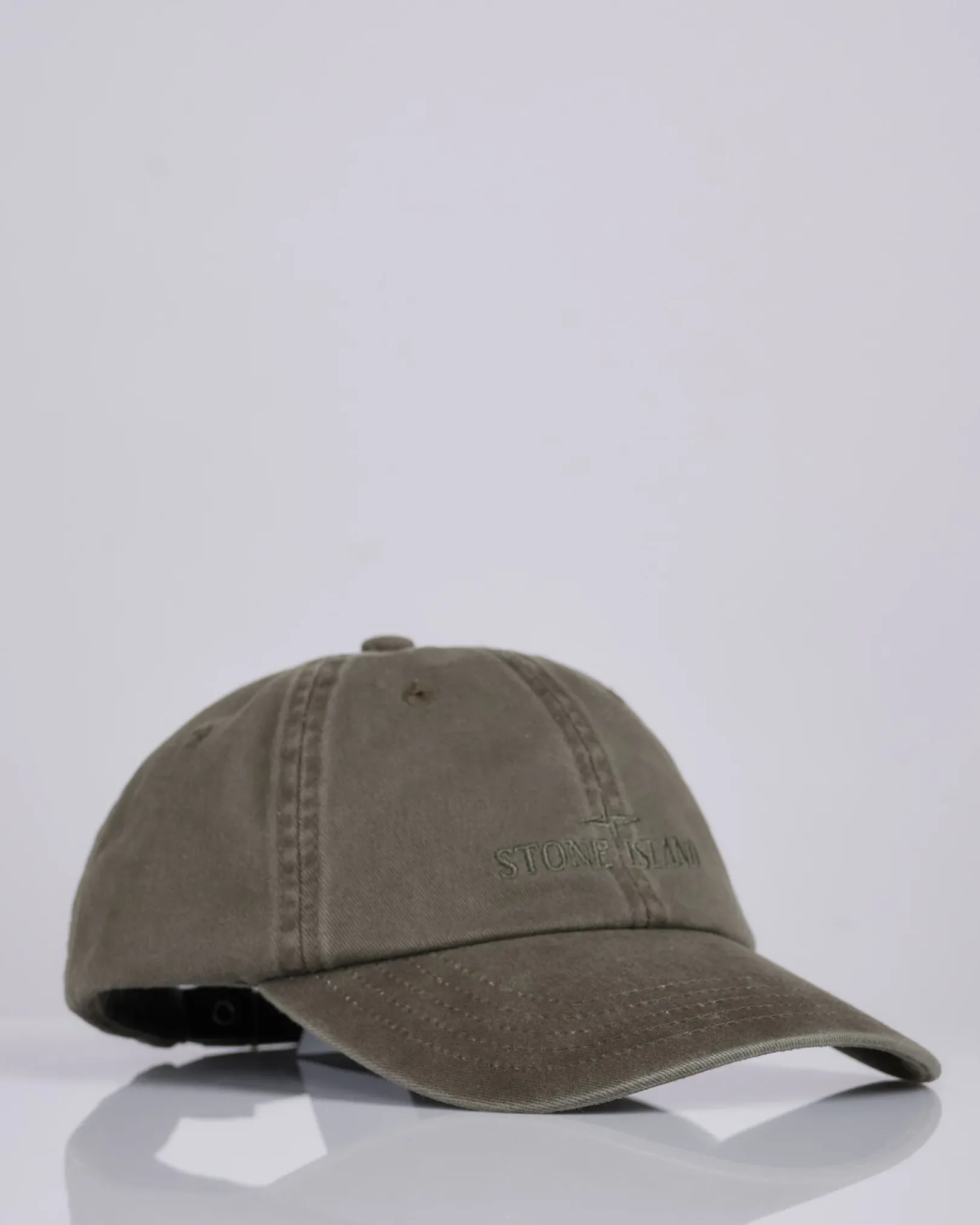 Raised front embroidery of the Stone Island Compass logo. One eyelet on panels. Adjustable strap and clip on back.