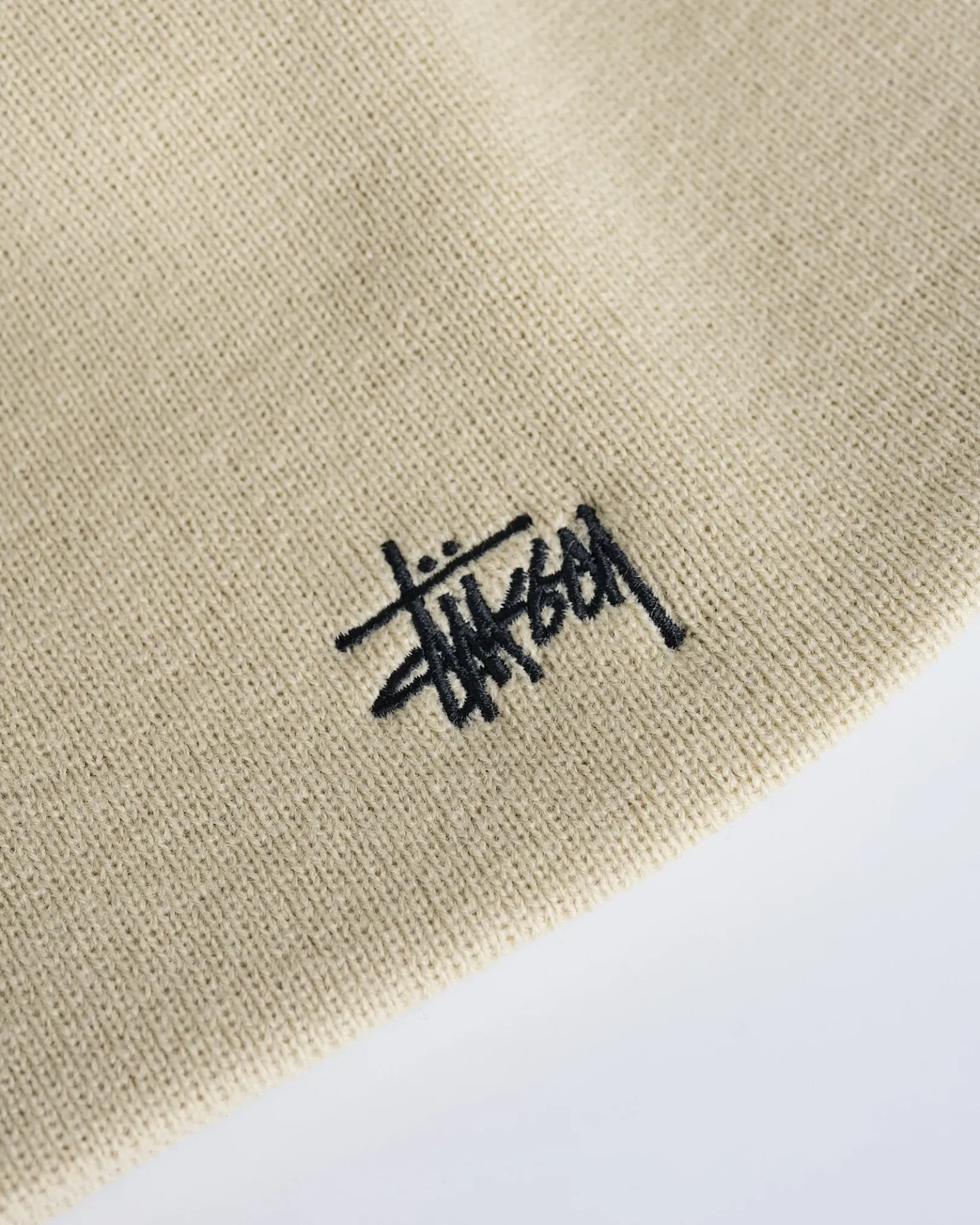Fitted skullcap beanie in a fine guage knit. Stüssy basic stock logo embroidery at the front.