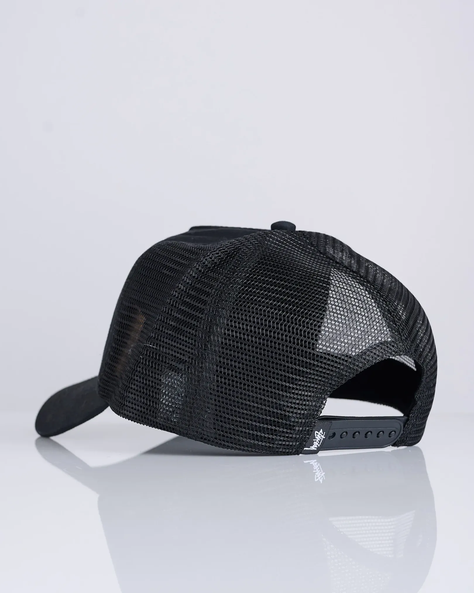 High crown five panel trucker cap in cotton twill. Stüssy S crown logo embroidery at front.