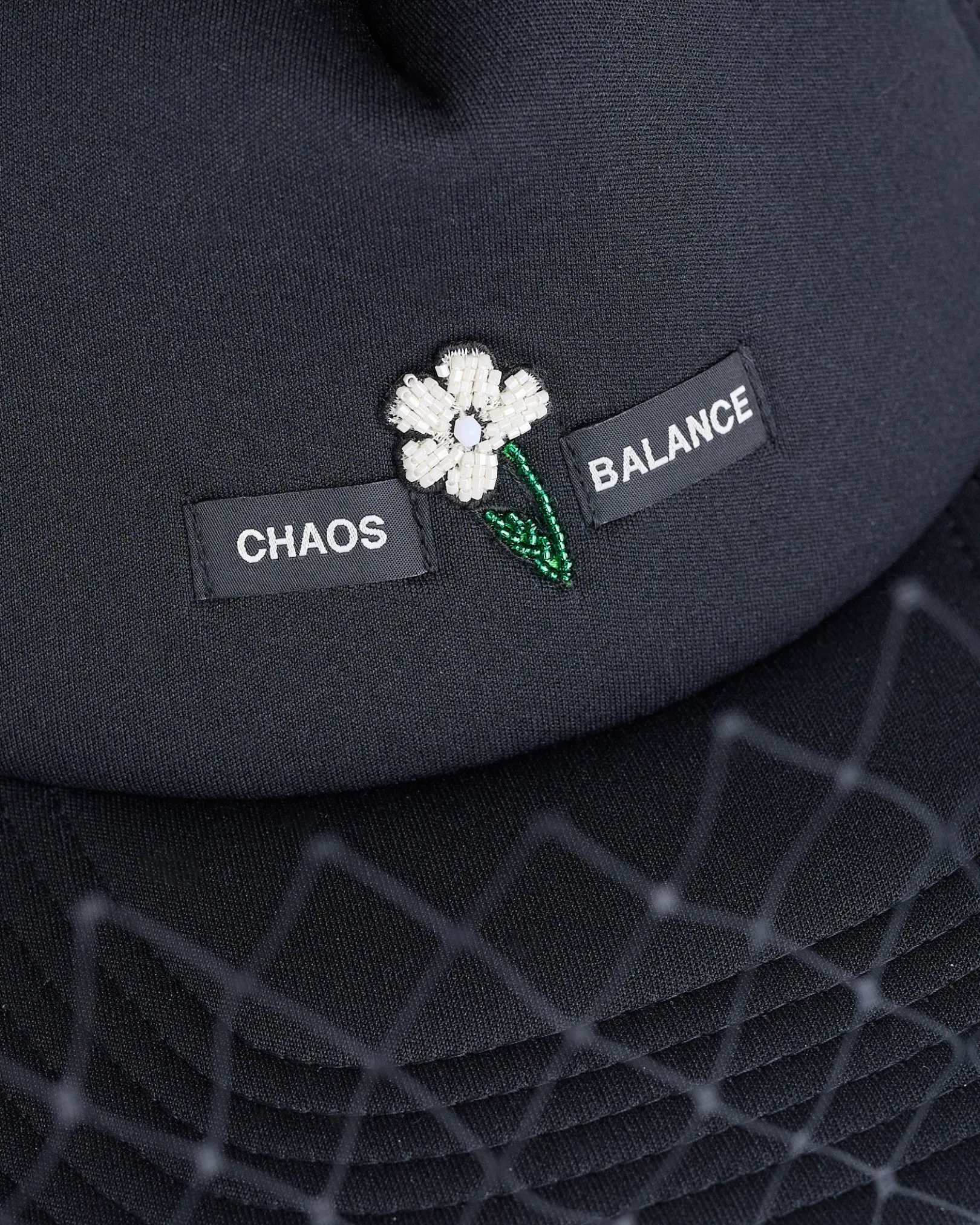Blending subversive detail with classic streetwear, the Mesh Veil Trucker Cap from UNDERCOVER features bead embroidery and ribbon detailing at the front, along with the brand’s iconic Chaos/Balance logo. Designed with a removable mesh veil, this unique take on the trucker silhouette fuses punk attitude with refined craftsmanship.