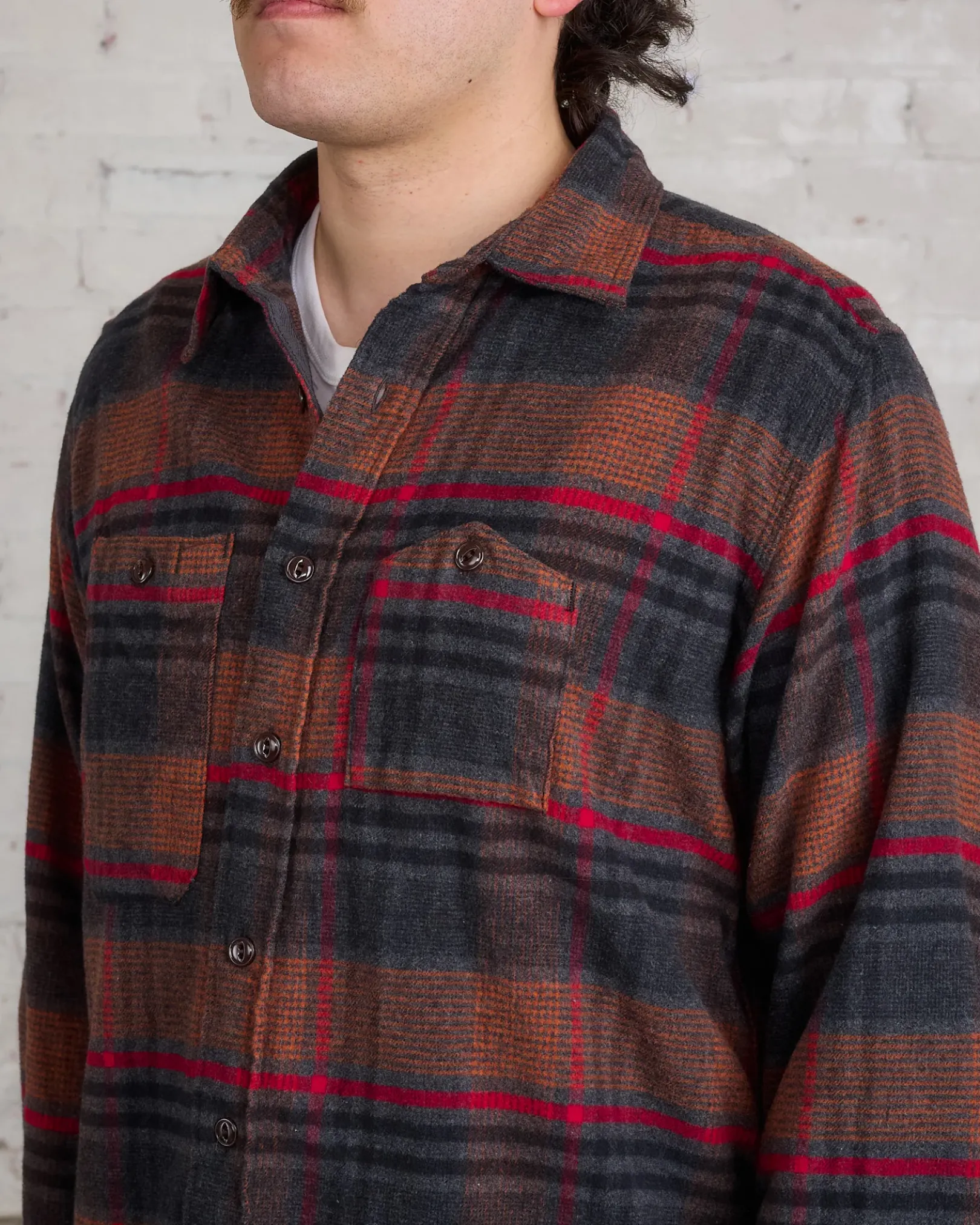The Work Shirt stands out due to its three types of stitching: flat fell single stitching on the hem, placket, and pockets; triple stitching on the sides, armhole, and back yoke; and double-needle stitching on the collar and cuffs.