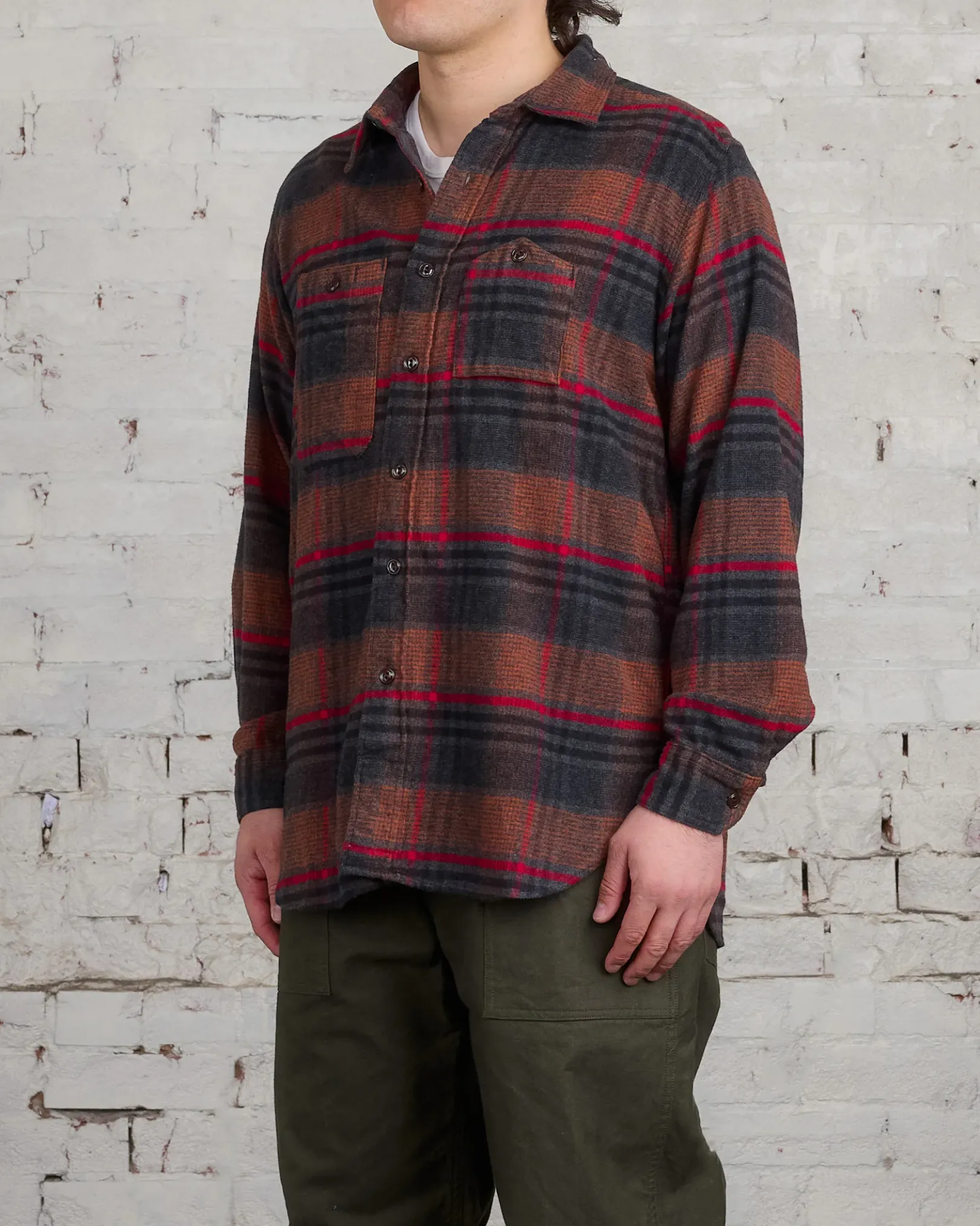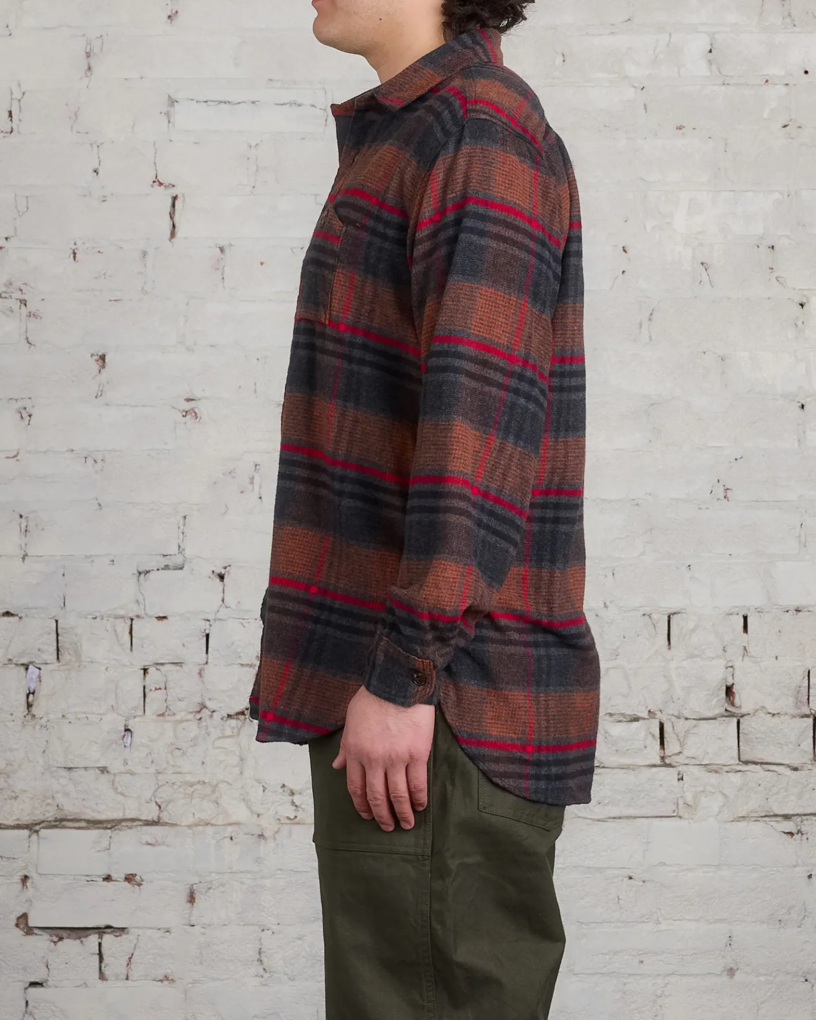 Daiki introduced the Work Shirt during the second season of Engineered Garments. When it debuted in 2000, most Americans still considered work shirts as a tool restricted to manual work. Practical details included button-close asymmetrical front pockets, with the right breast pocket featuring an integrated pencil slot and the left side “mountain” pocket specifically designed to hold a pack of Lucky Strike cigarettes, providing easy access without unbuttoning while preventing sweat damage. The patented cuff design allowed the shirt to tighten around the wrist without requiring costly pleats or gathering, further enhancing efficiency. Reinforcement stitching on the elbows and collar increased durability, while fish-eye buttons added a unique touch.