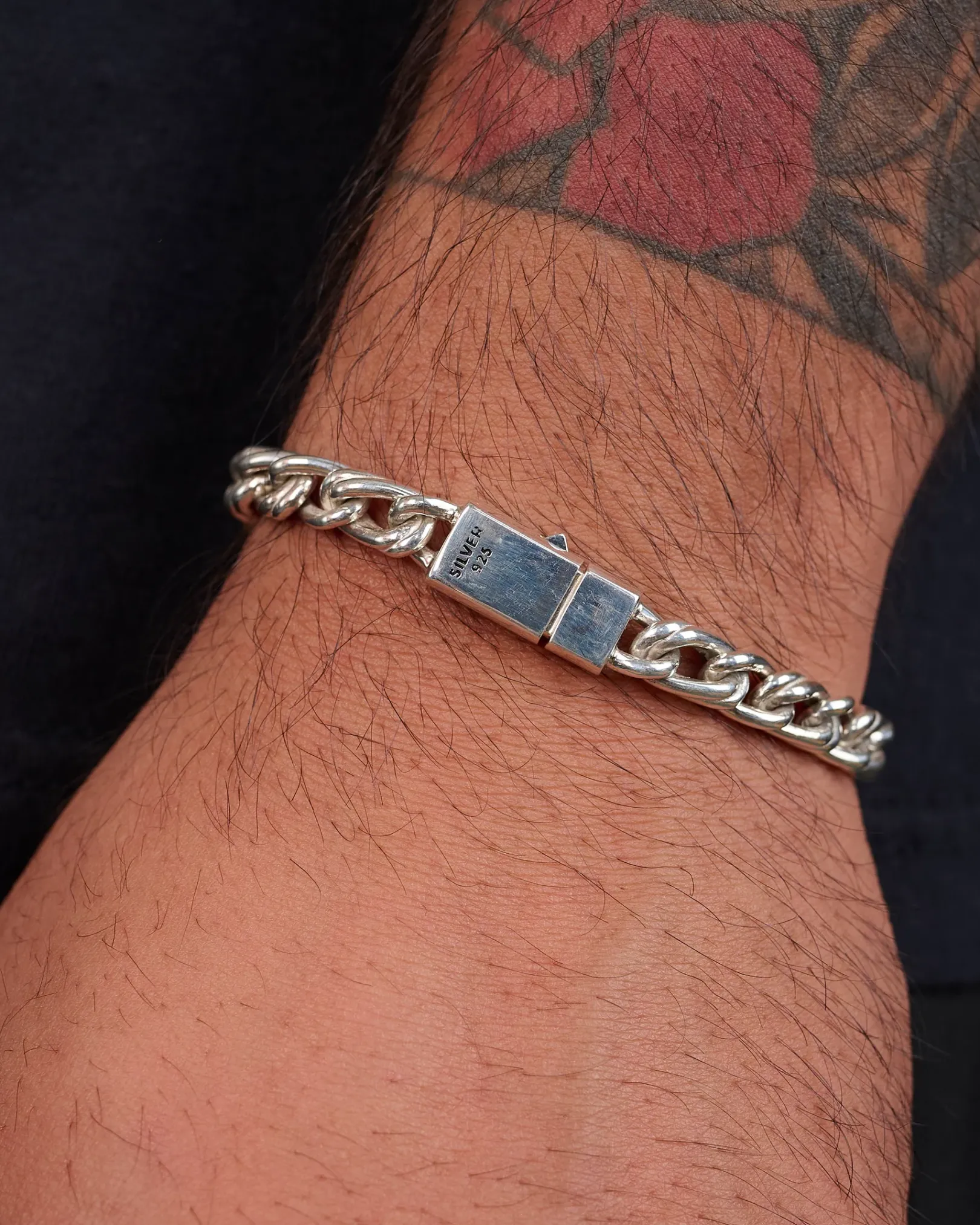 Silver 925 handmade double + single rolled link bracelet with push clasp