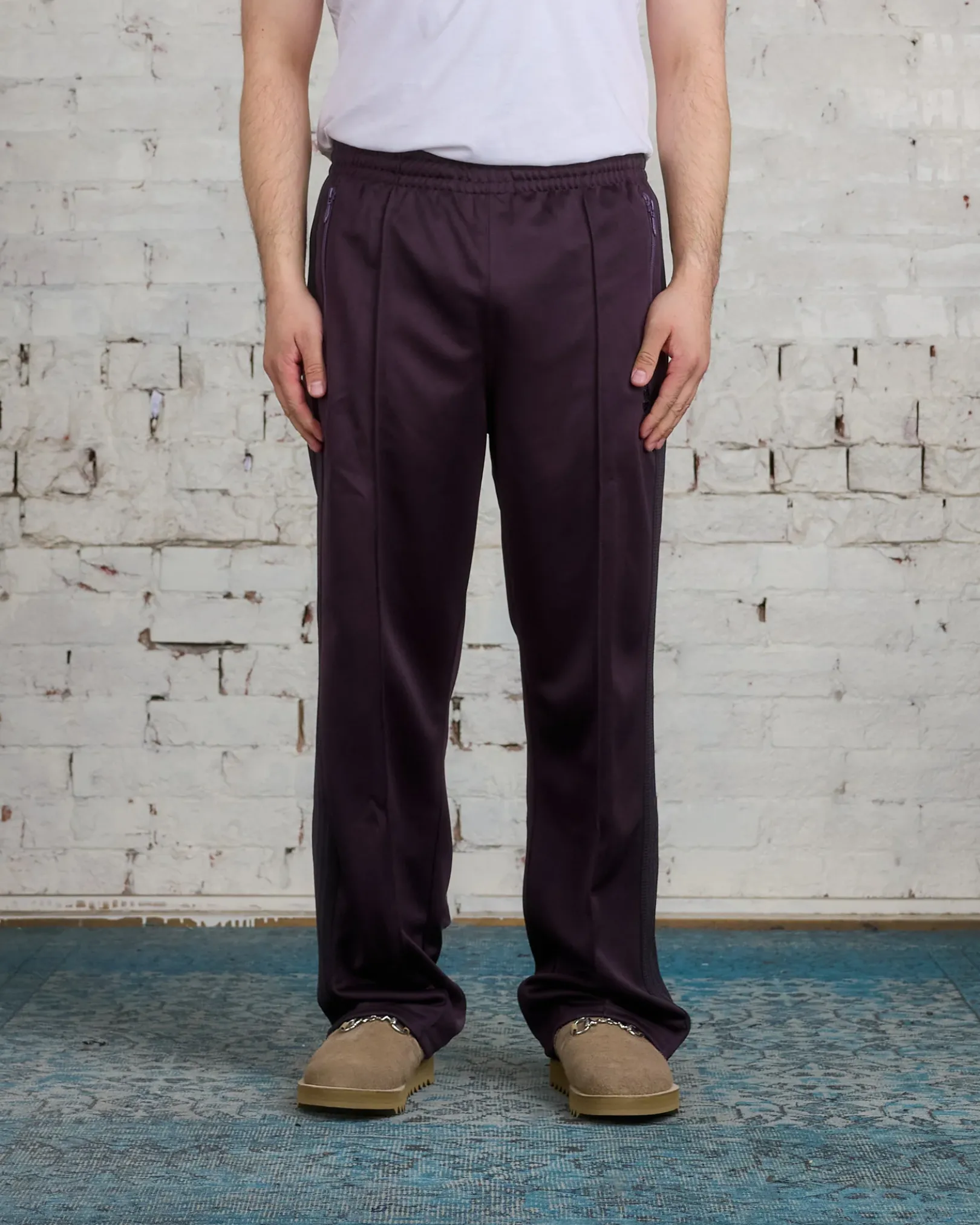 The Narrow Track Pant by Needles. With a heritage steeped in classic sportswear, these pants have a narrow fit, drawstring elasticated waist and a papillon embroidery.
