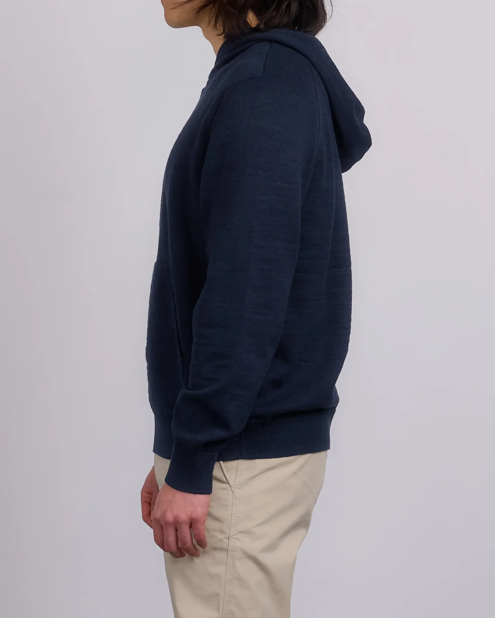 This seasonal zip hoodie is crafted from a midweight cotton slub that’s breathable and combed for a soft feel. Featuring a standard fit, with fully fashioned seams. Designed with a darted hood, semi-raglan sleeves, front pockets, and rib cuffs and hem.
