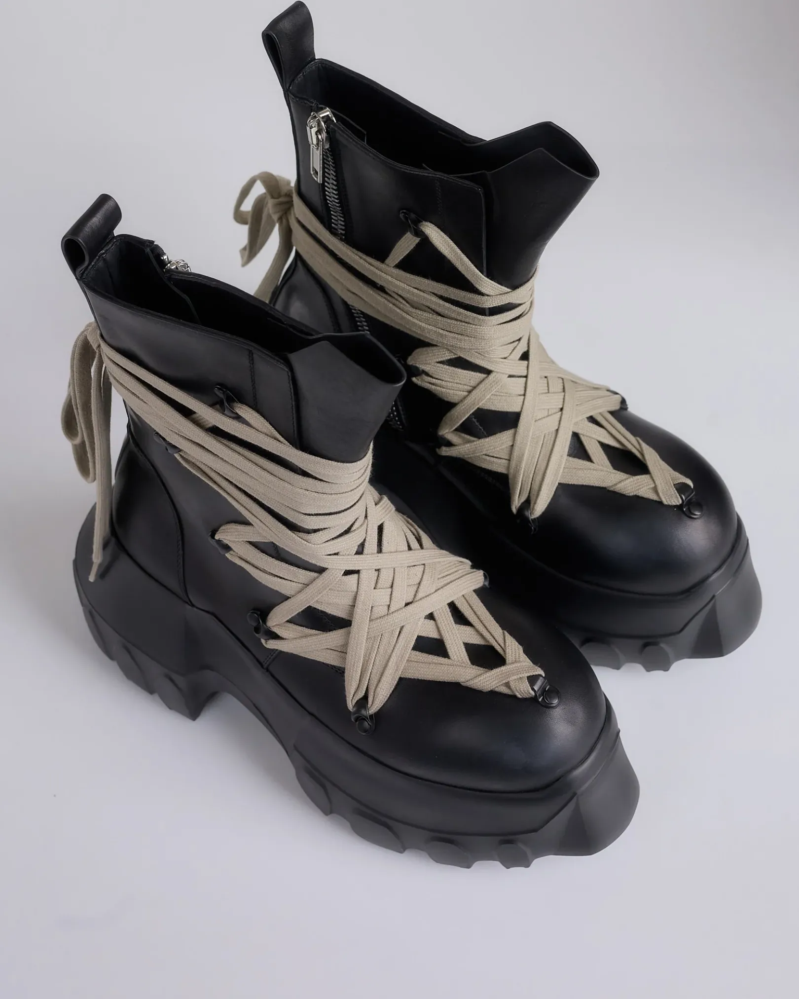 Rick Owens SS25 HOLLYWOOD megalace mega tractor boots in black/black washed calf