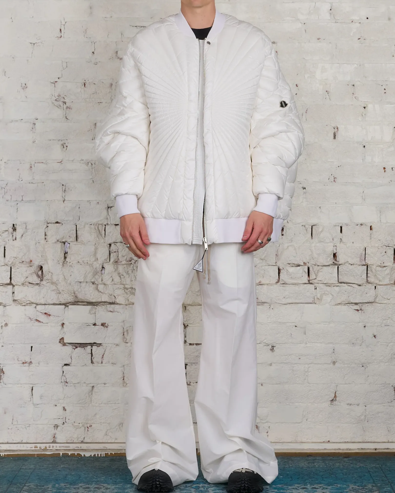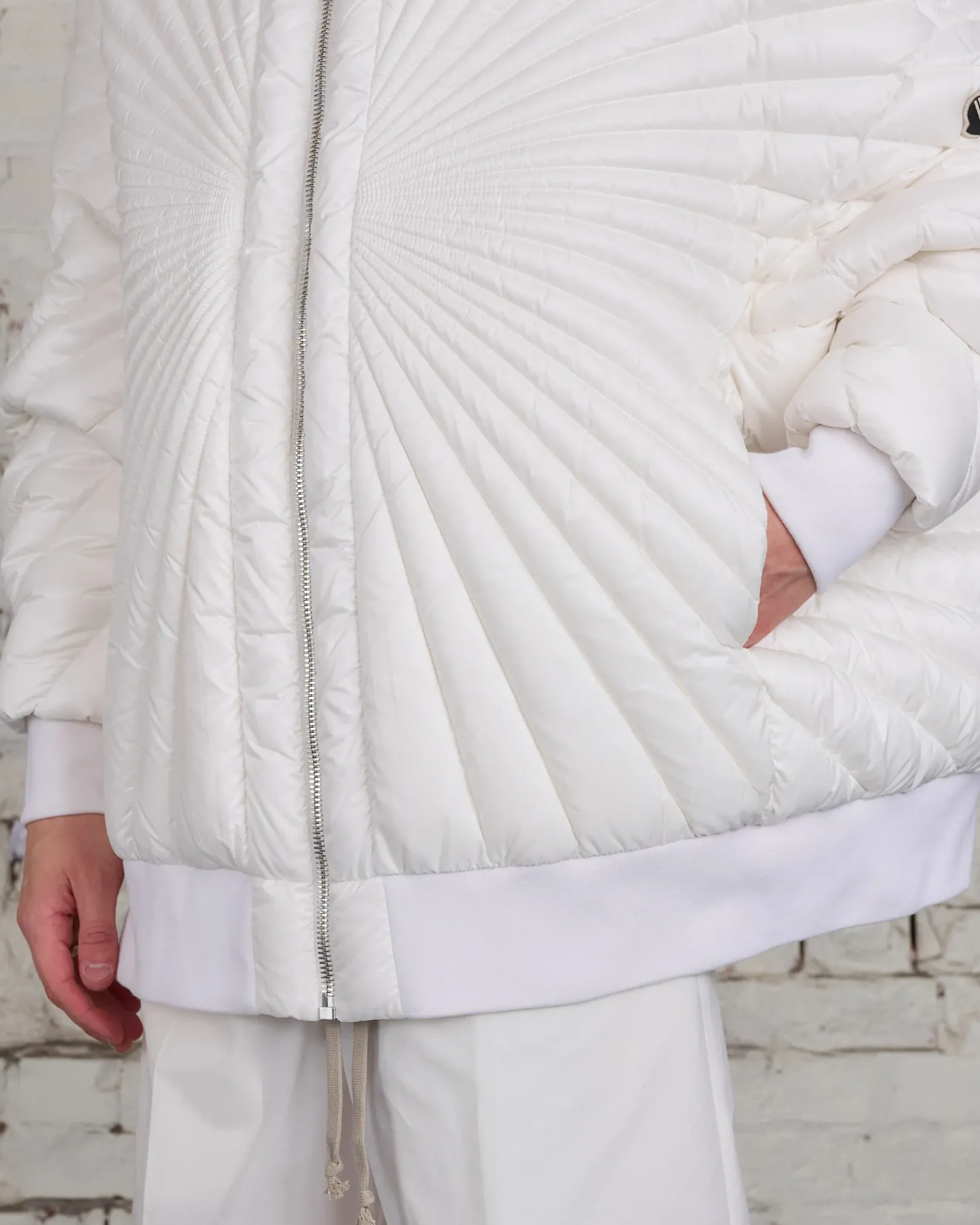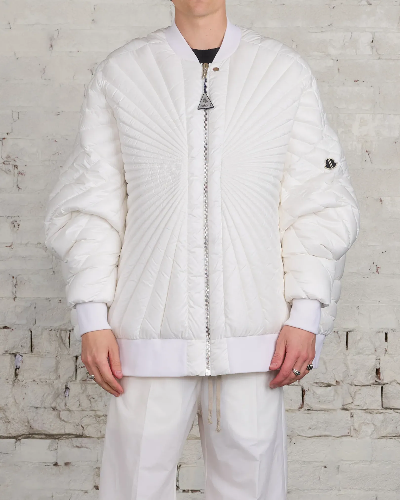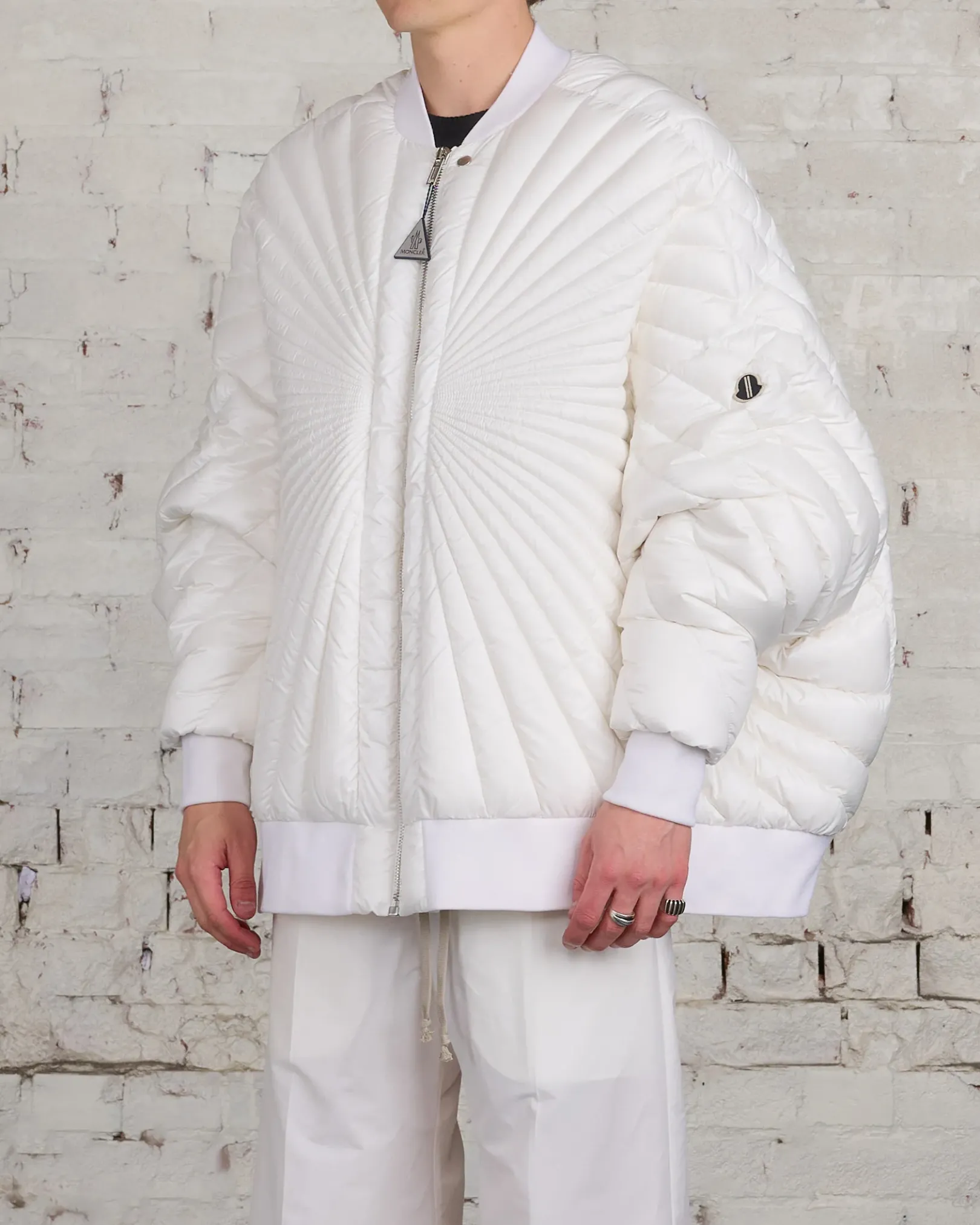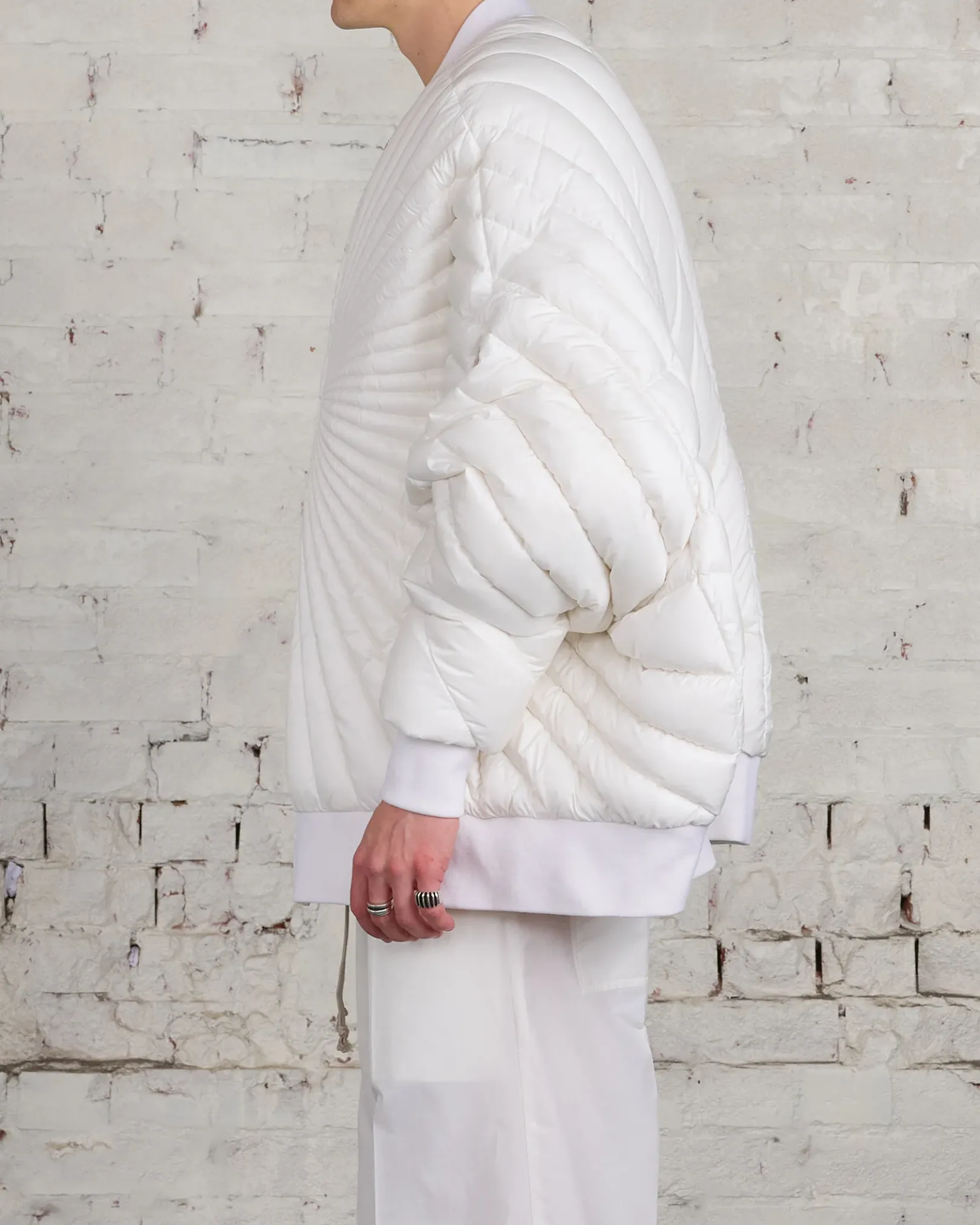 Moncler + Rick Owens FW24 radiance peter jkt in white recycled longue saison with radiance quilting