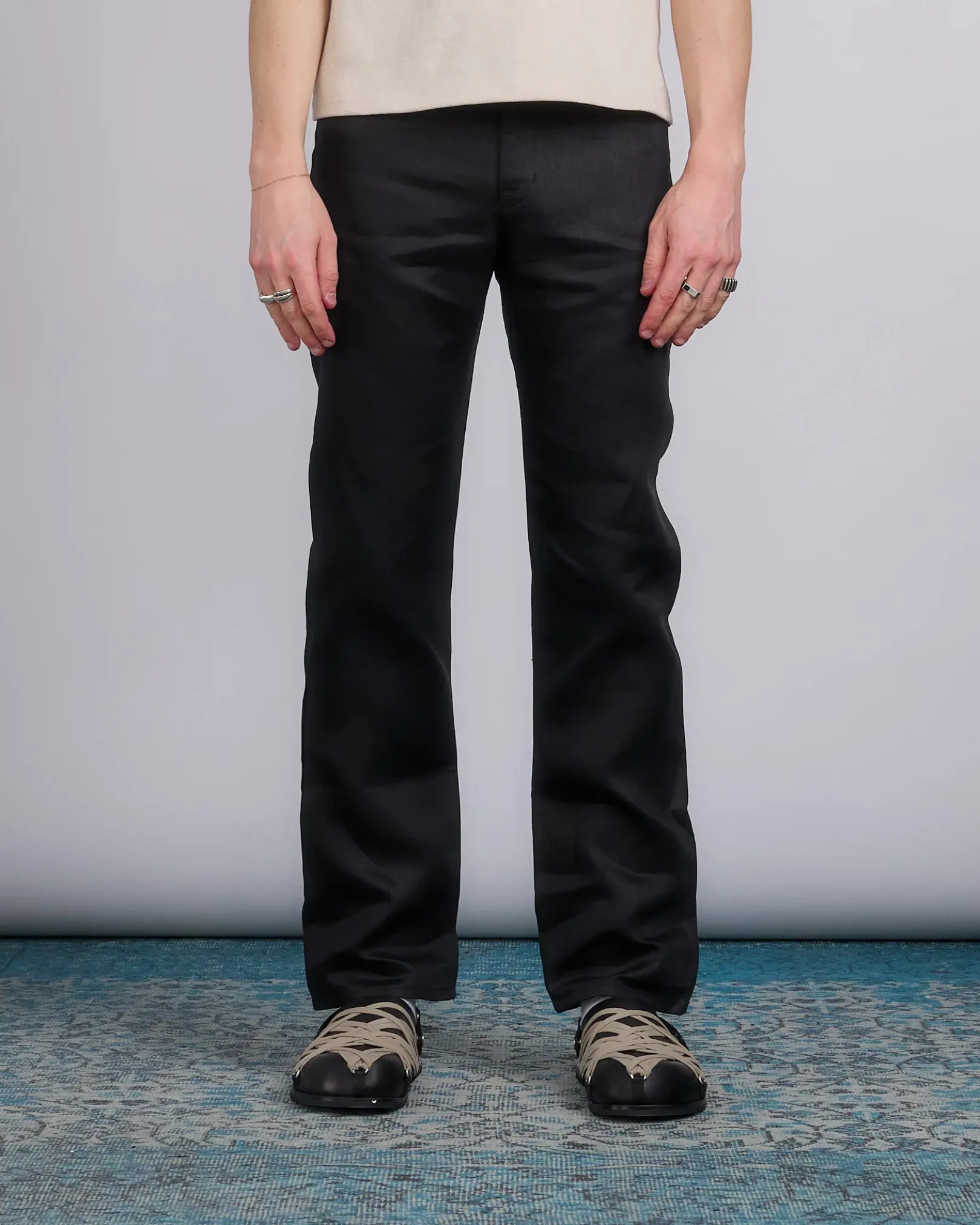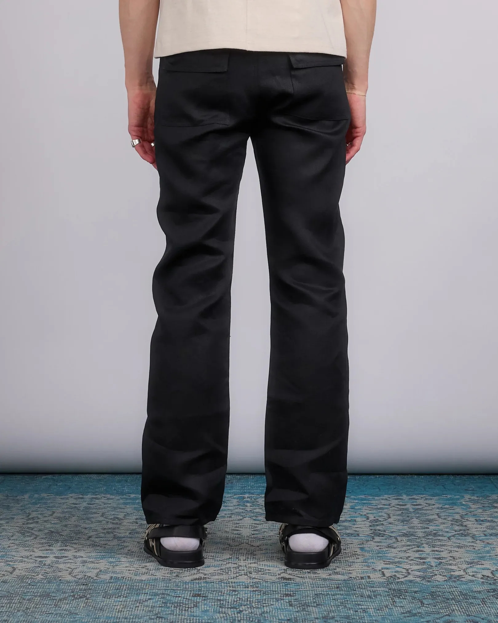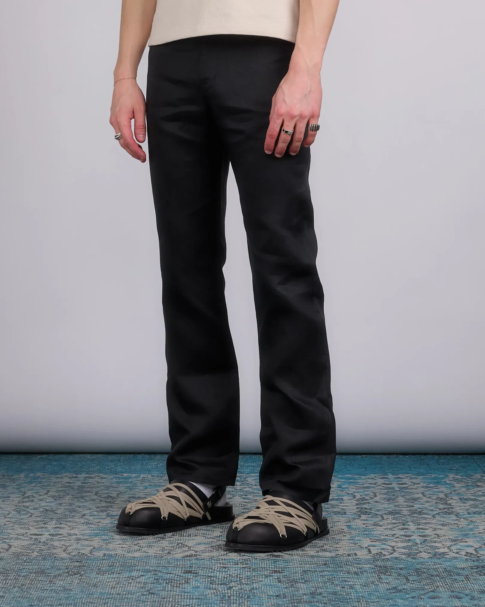 Rick Owens SS25 hollywood runway headon utility pant in black linen twill
