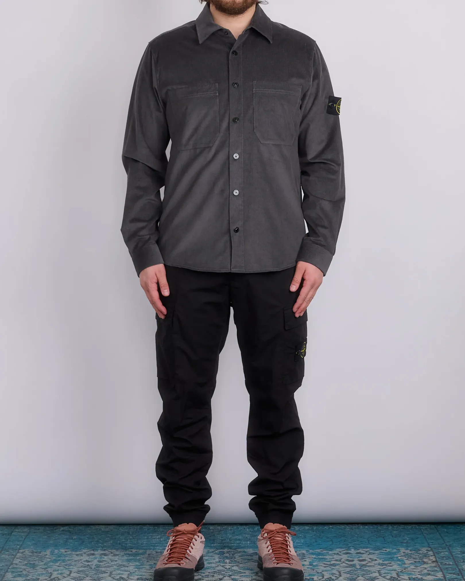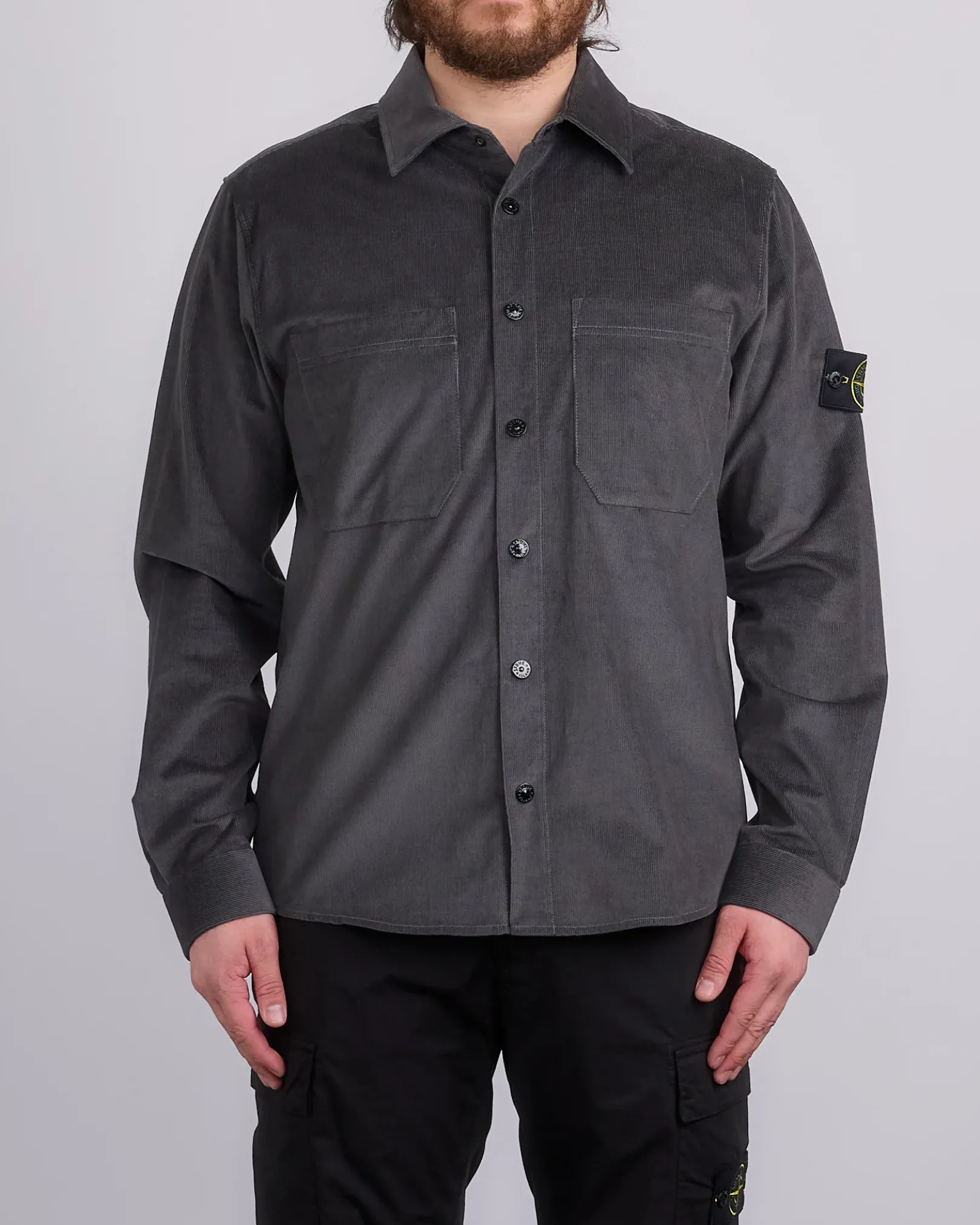 Two chest patch pockets. Stone Island badge on the left sleeve. Snap at cuffs. Yoke on back. Rounded bottom hem. Snap fastening. Regular fit.