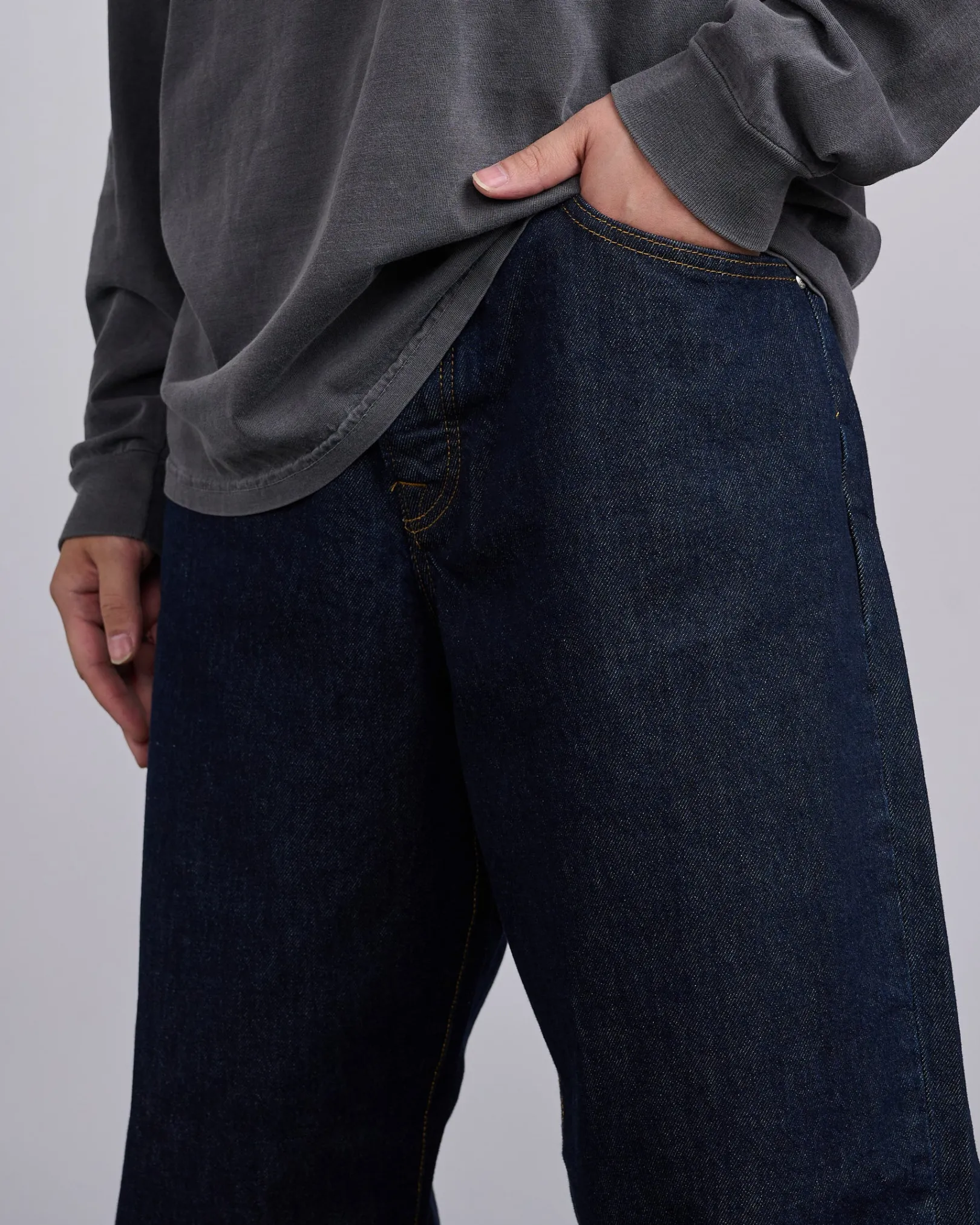 Baggy jean in 14.5oz denim. Oversized waist with a relaxed rise, tapered cut, and roomiest thigh fit of Stüssy’s denim range. Features branded nickel shank hardware and a suede Stüssy logo patch. Size down for a more true-to-size fit in the waist.