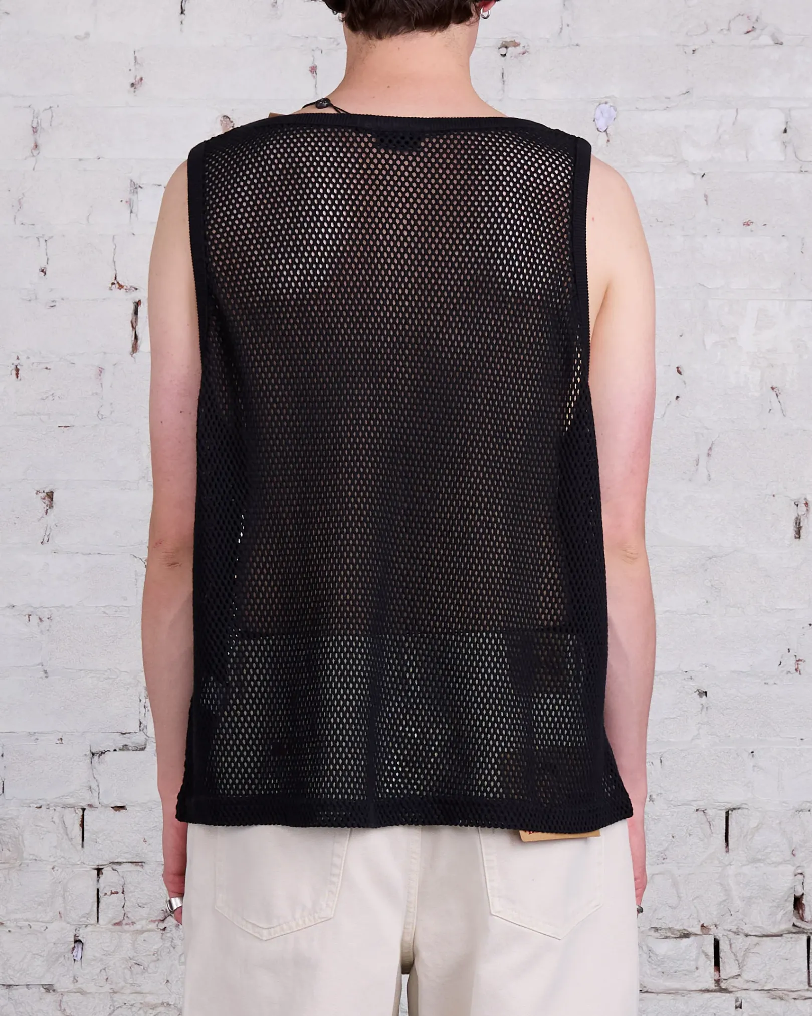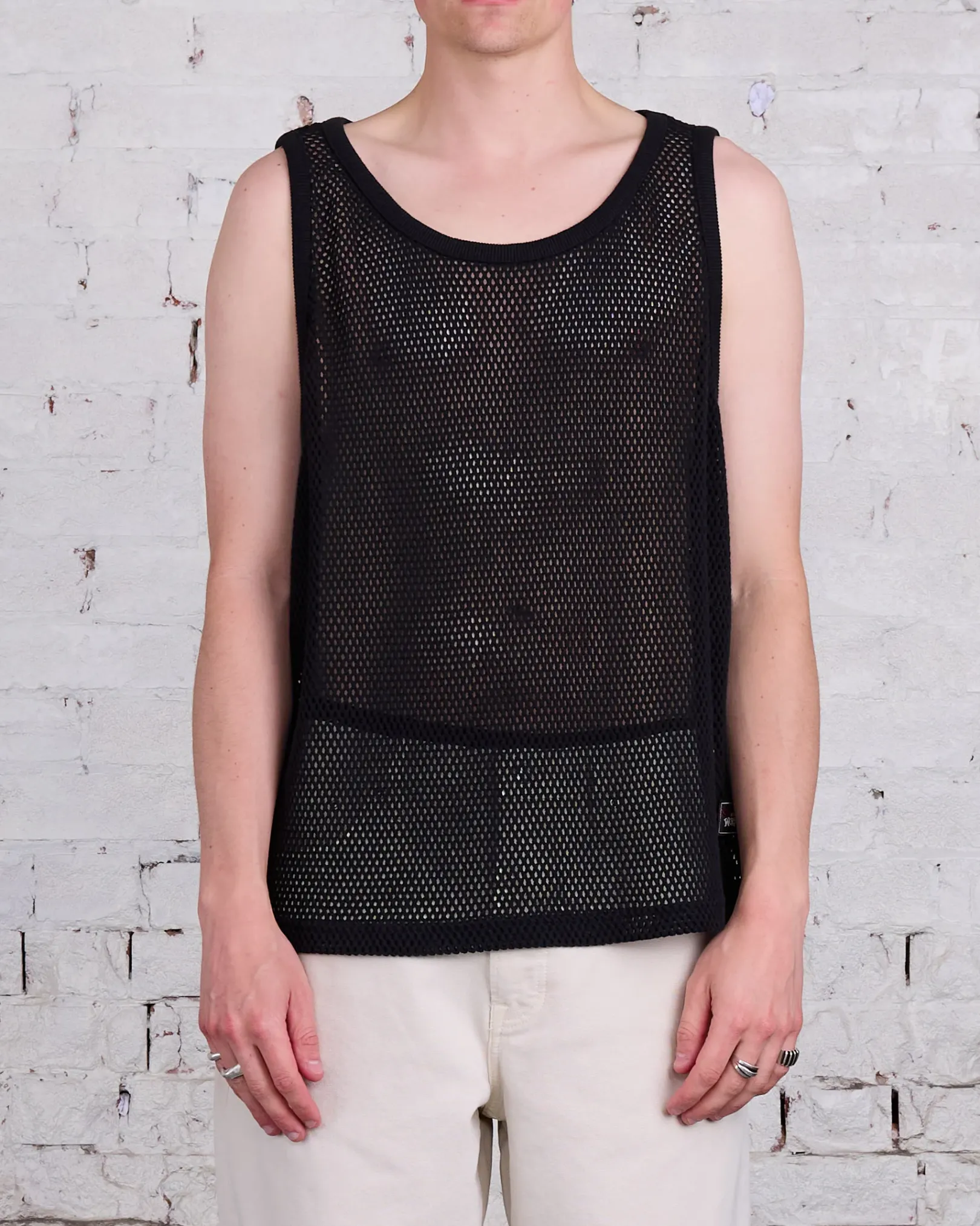 Boxy fit tank top in garment washed cotton mesh with a slightly cropped length. Stüssy authentic workgear label sewn above the hem.