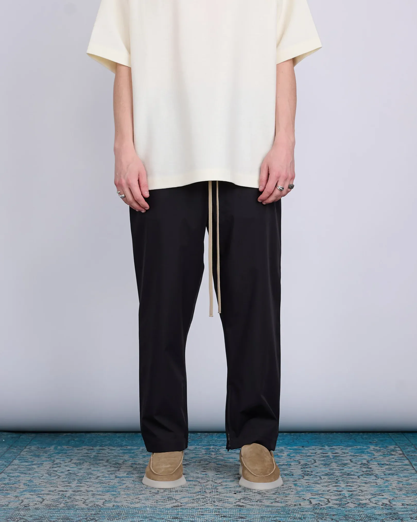 The Track Pant is made in Italy from a stretch nylon blend to balance sartorial polish and sportswear comfort. The piece is designed in a classic, straight-leg fit with ankle zippers for adjustability. Additional details include side pockets, encased elastic waistband, and elongated drawstrings. A Fear of God leather label is stitched at the corner front.