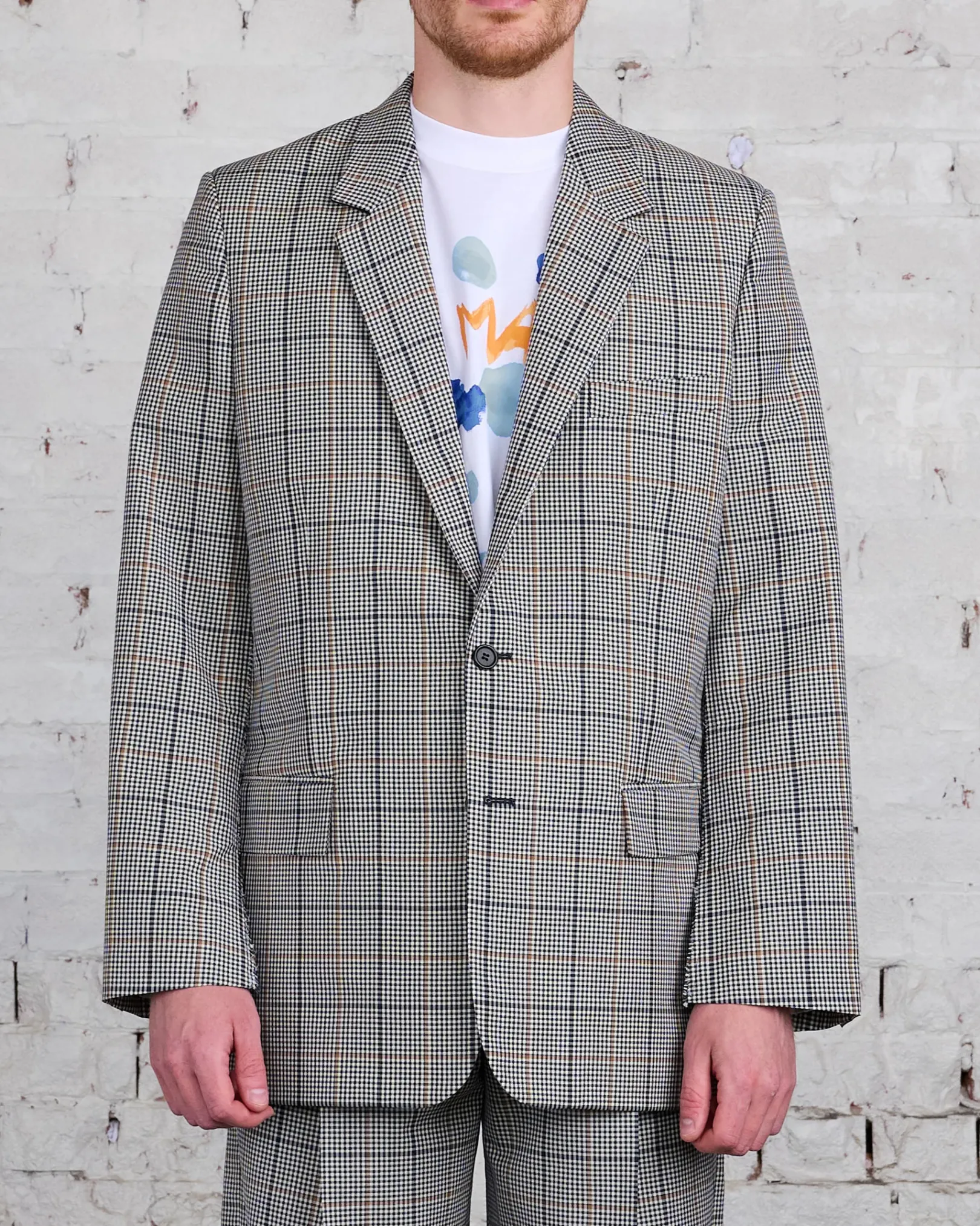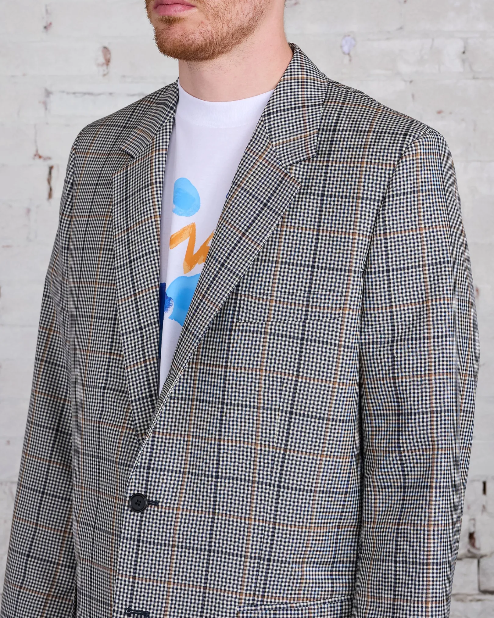 Discount Marni Runway Raw Cut Side Blazer Blue-Black Plaid
