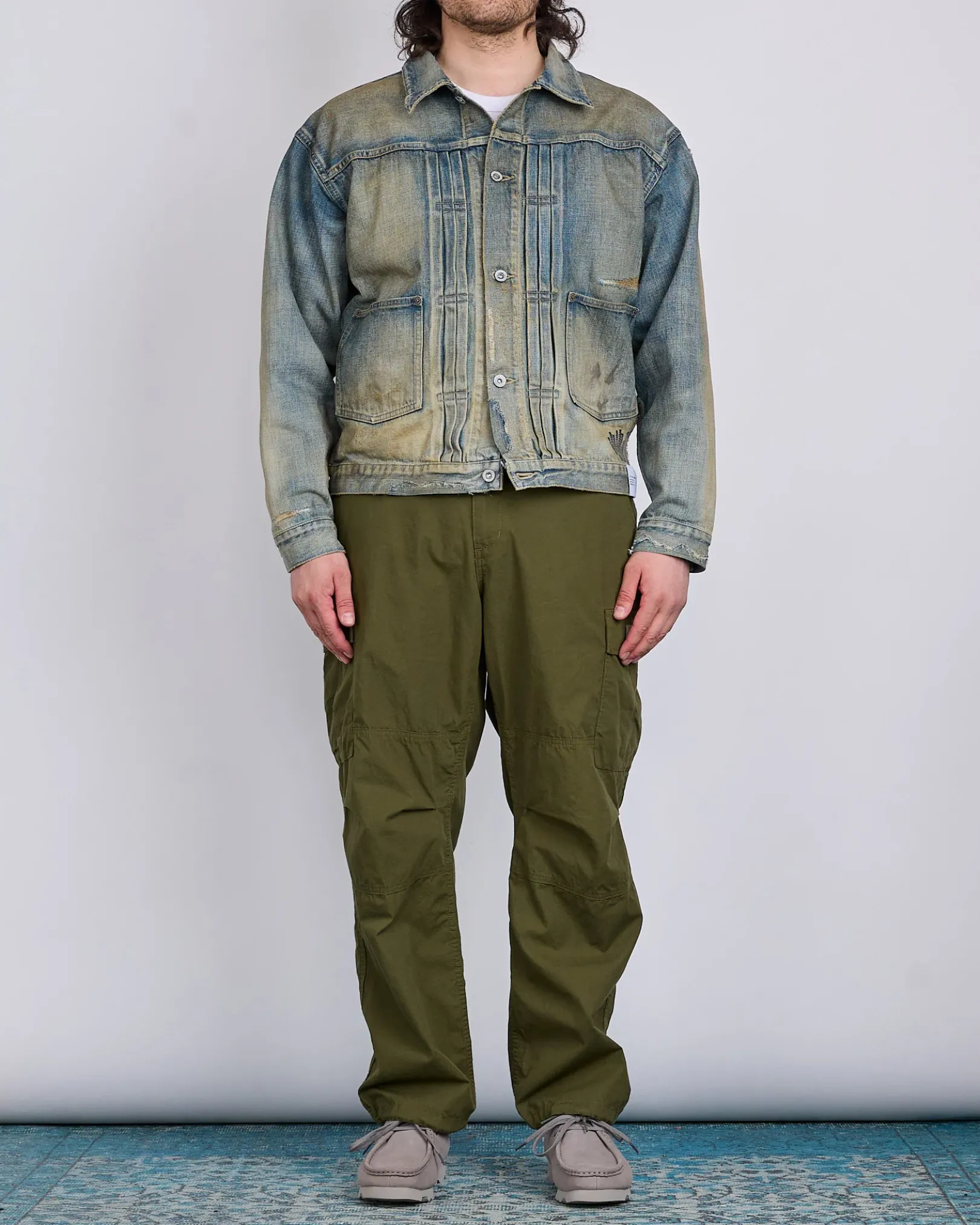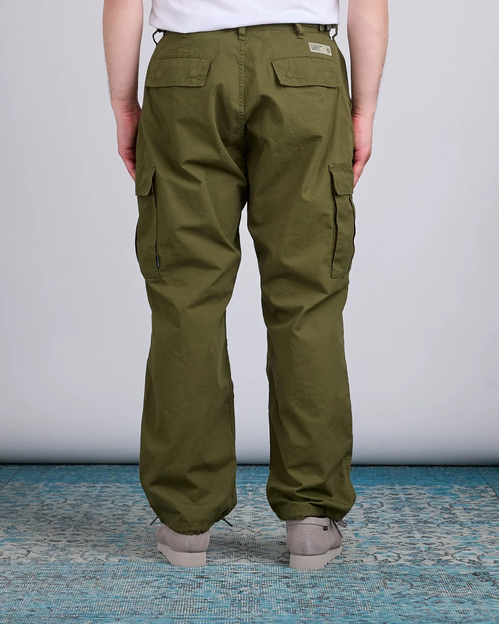 Crafted from high-density military-grade weather fabric, the Neighborhood BDU Pant delivers rugged durability with elevated detailing. Designed with cargo pockets, concealed-snap hip pockets, and adjustable drawstrings at the hems, they feature tucked knees for added mobility and a generous silhouette. Finished with original hardware, cat-eye buttons, and signature branding throughout.