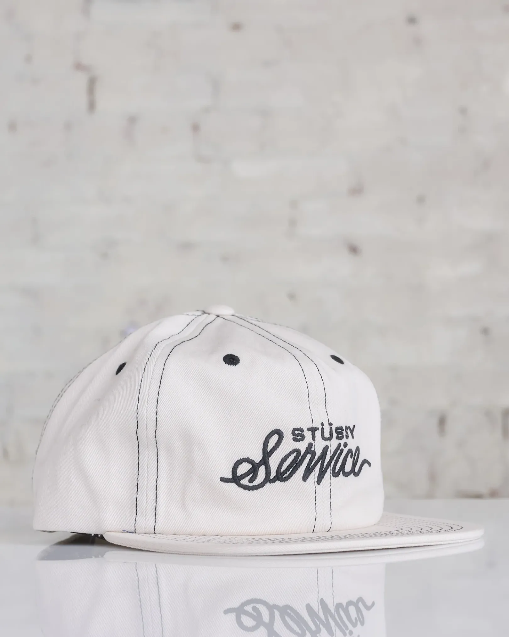 Mid-depth six panel cotton twill cap. Stüssy artwork embroidered at the front.