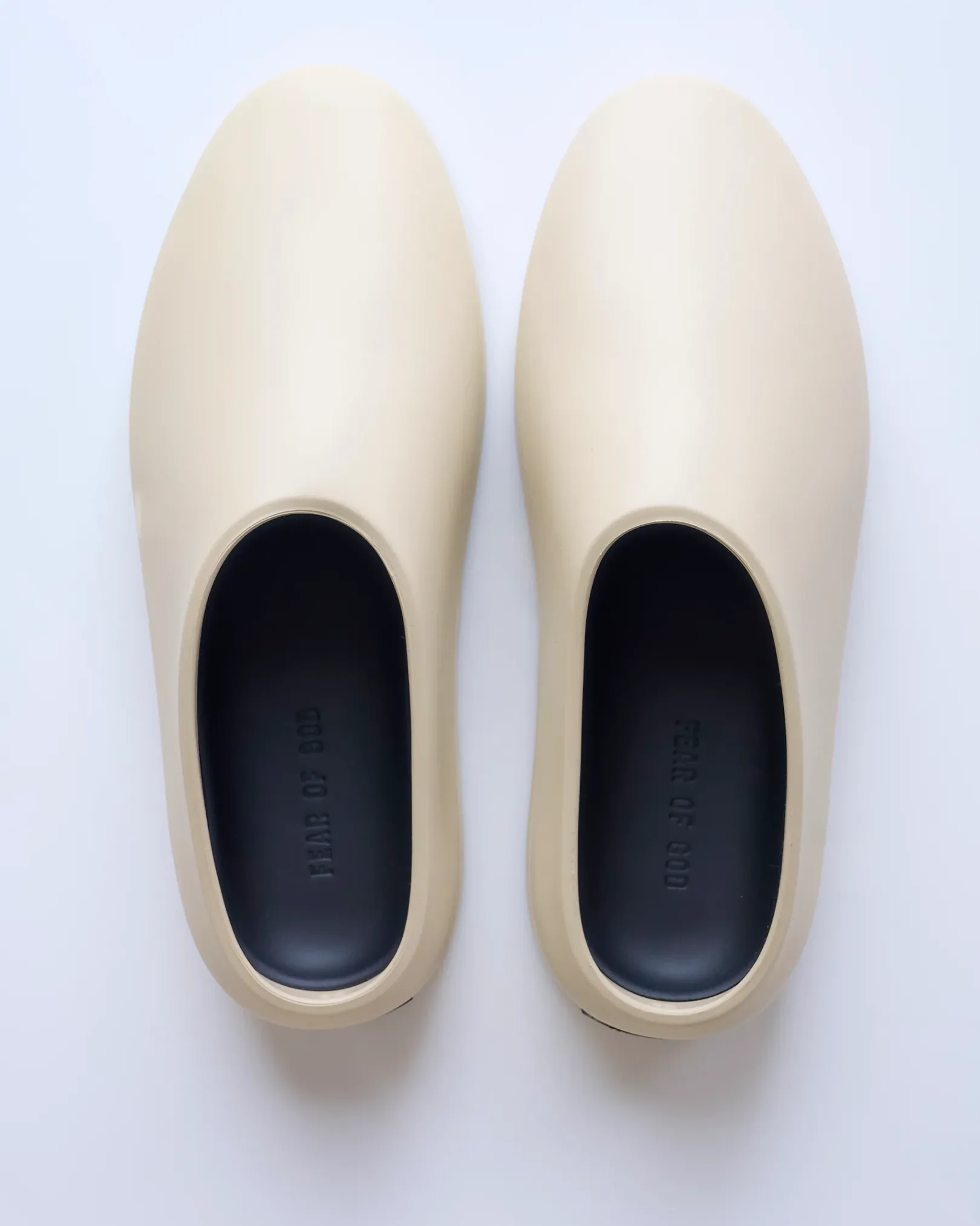 Crafted in Italy, the redesigned California exhibits a strong sculpted profile with elevated details, such as a removable Fear of God debossed leather insole for comfort and a contrasting black rubber sole for durability. The new style features a denser Extrabounce foam to create a more substantial footwear proposition. Minimalist branding is evident in the black rubberized Fear of God label on the heel.
