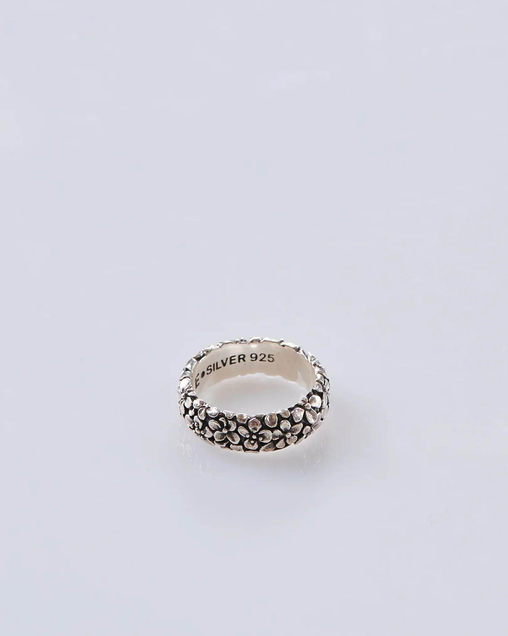 3D textured floral band. Silver 925 base, MAPLE logo and hallmarking inside.