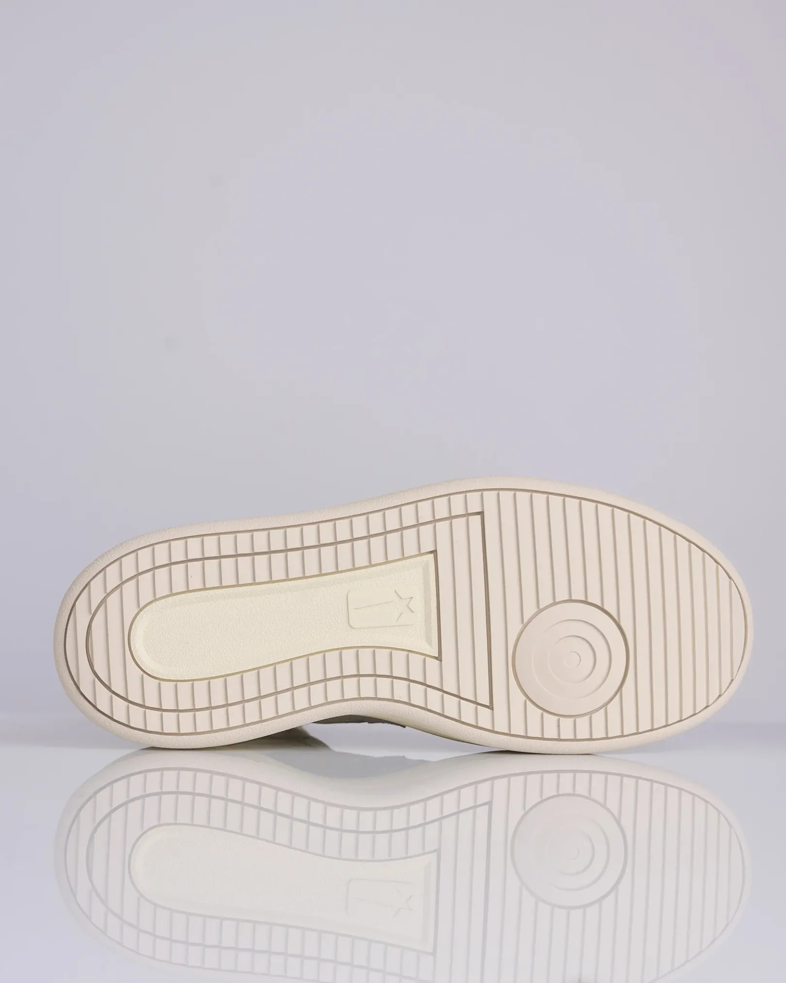 It has the pentagram collab logo on the lateral quarter, air vent perforations on toe and side, and collab logo on the sole.