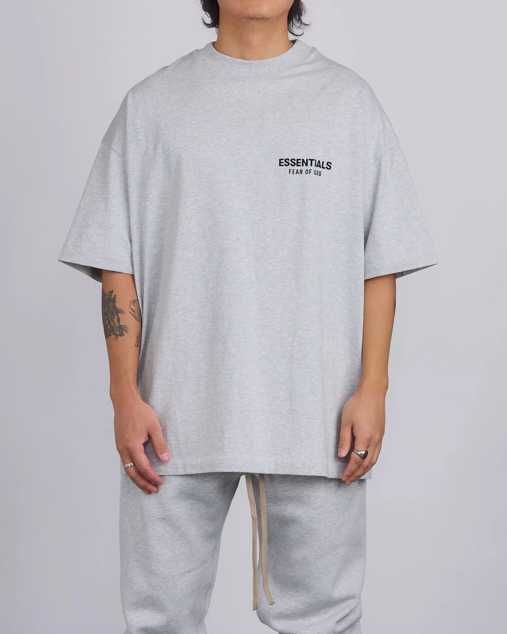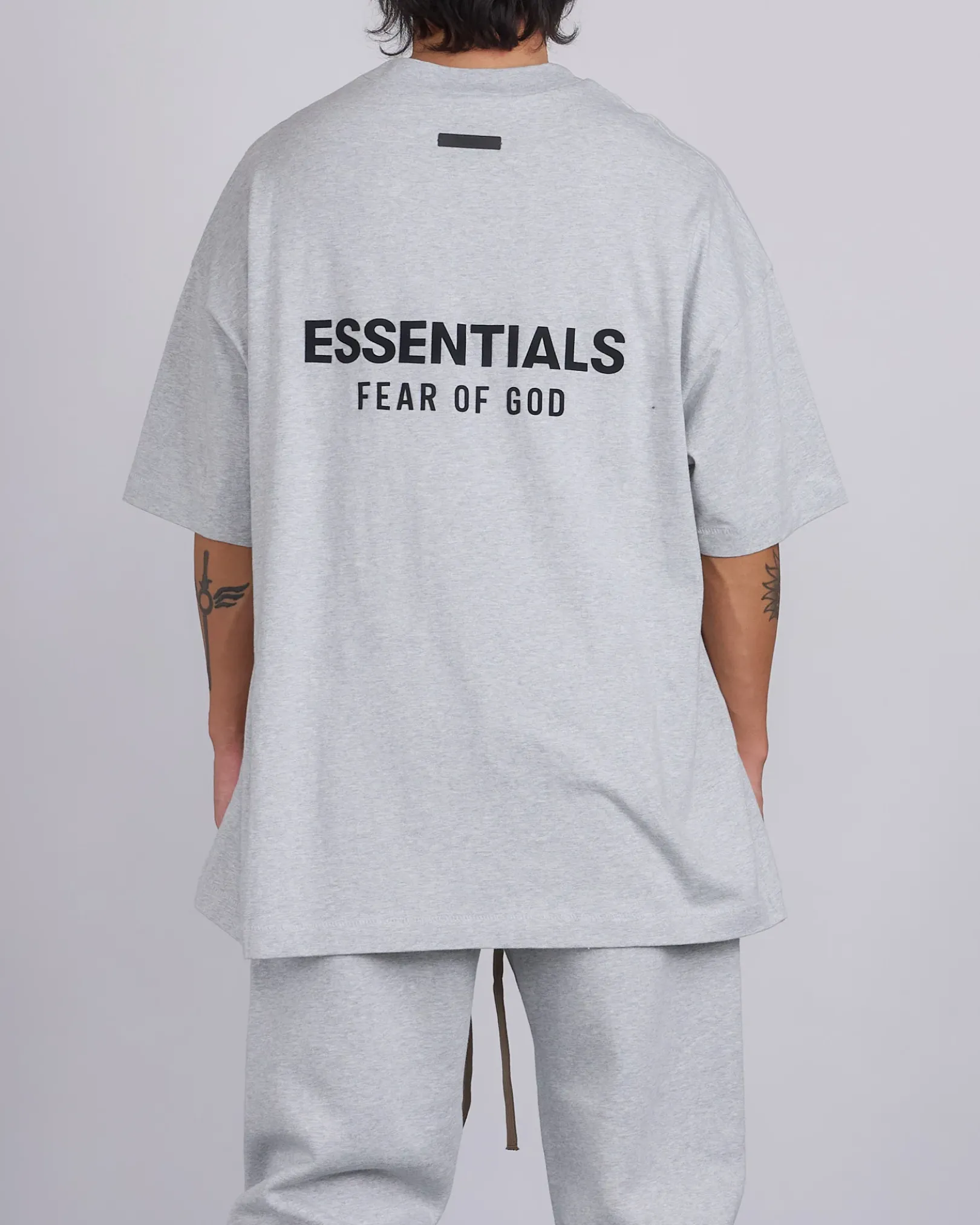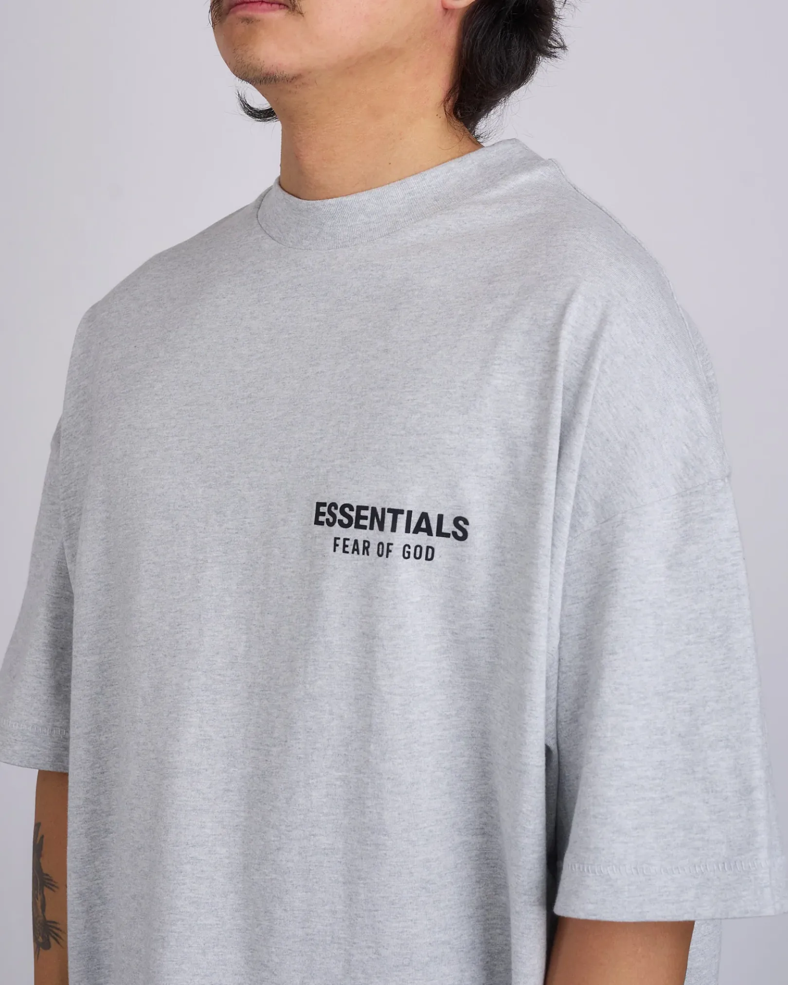 Hot Fear of God Essentials Jersey Logo T-Shirt Light Heather Grey