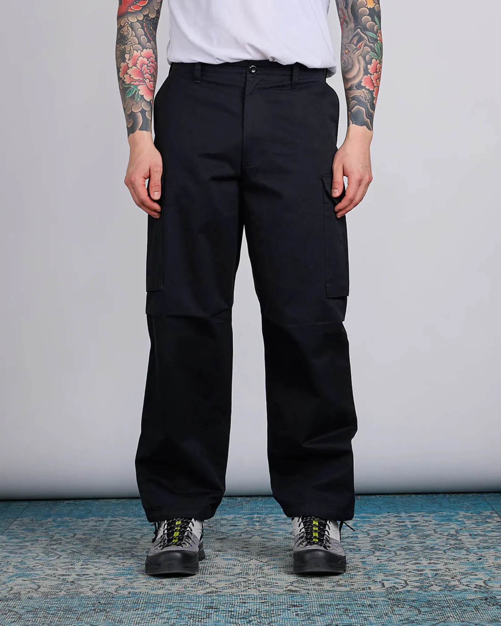This classic cargo pant is crafted from a cotton chino twill that’s washed for a softer, lived-in feel. Featuring a generous straight leg, with a regular rise. Designed with a belt loop waistband, corded slash pockets, a YKK metal zip fly, bellowed cargo pockets, rear flap pockets, and drawcord cuffs. Finished with knee pleats for added volume and ease of movement.