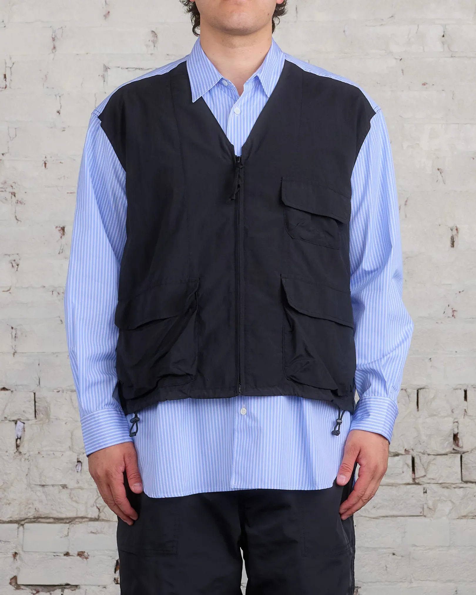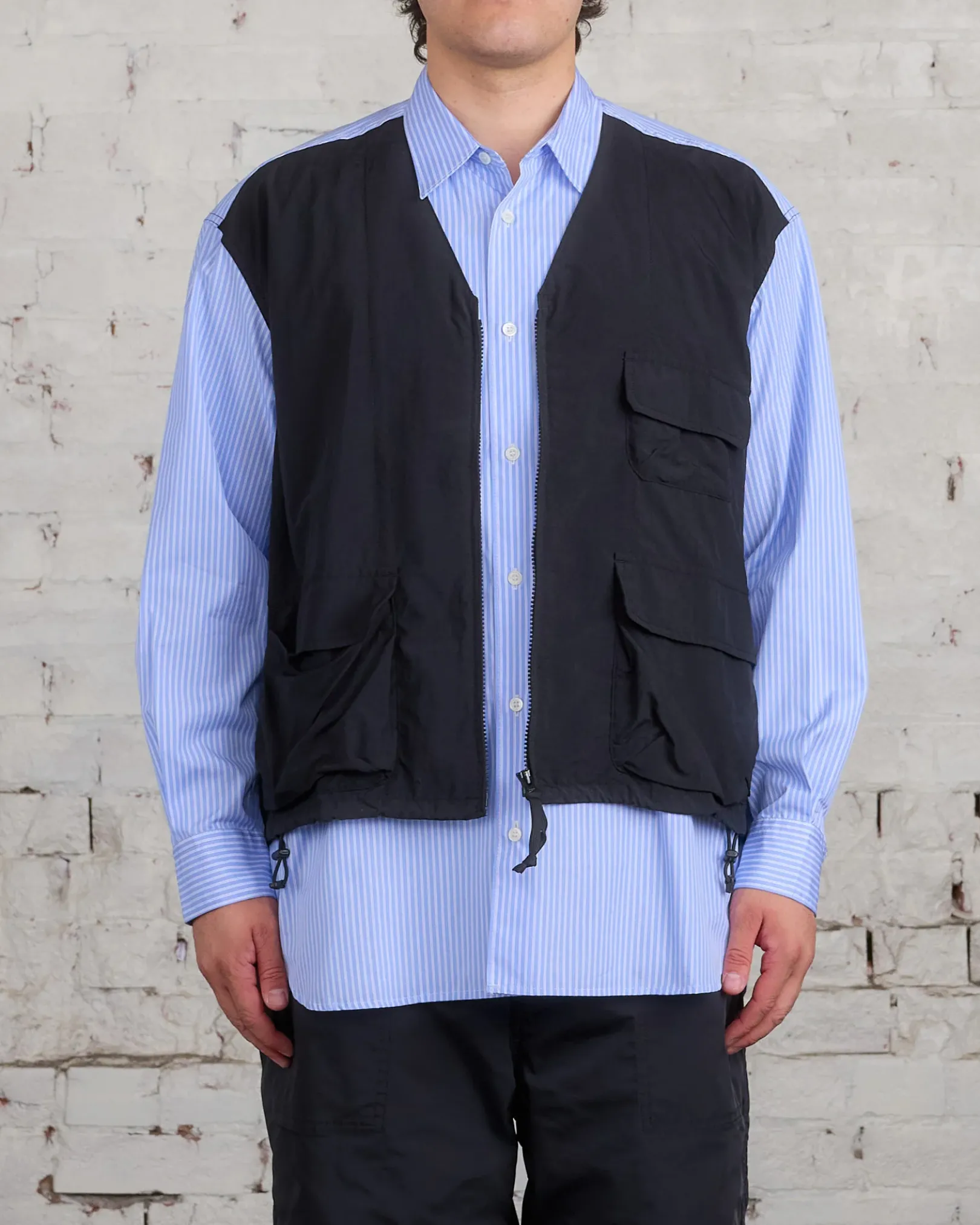 Expertly crafted in Japan, the COMME des GARÇONS HOMME Cotton Stripe/Nylon Tussah Button Cargo Shirt combines traditional menswear with utilitarian style. Made from 100% cotton, this relaxed shirt features a front button closure and button cuffs. The front also includes an attached zip vest, providing multiple storage solutions. It’s sick, tbh.