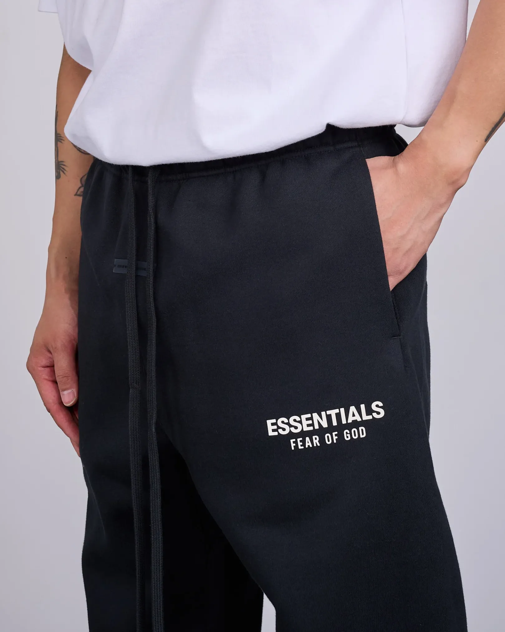 - “ESSENTIALS FEAR OF GOD” SOFT-TOUCH LOGO ON THE LEG