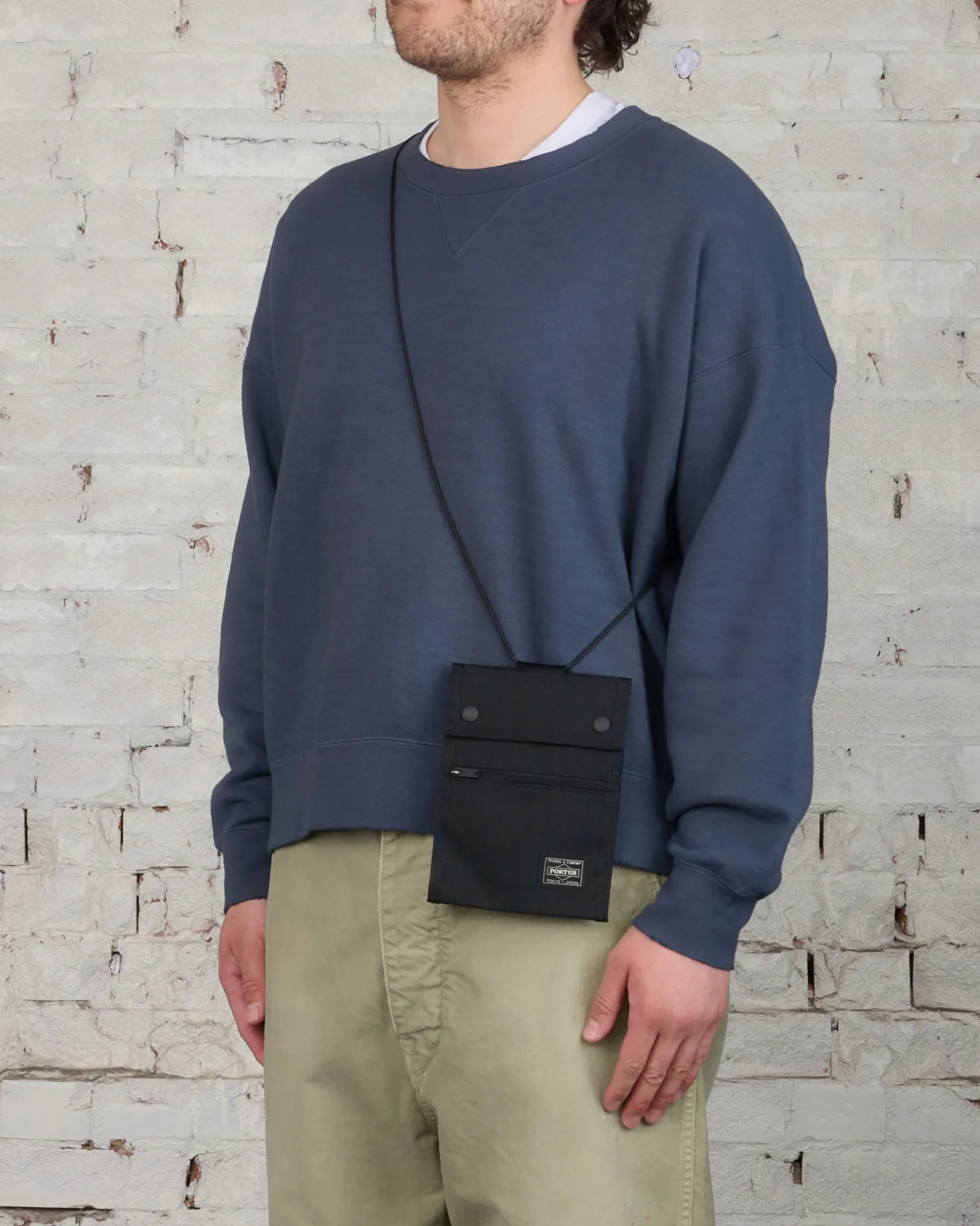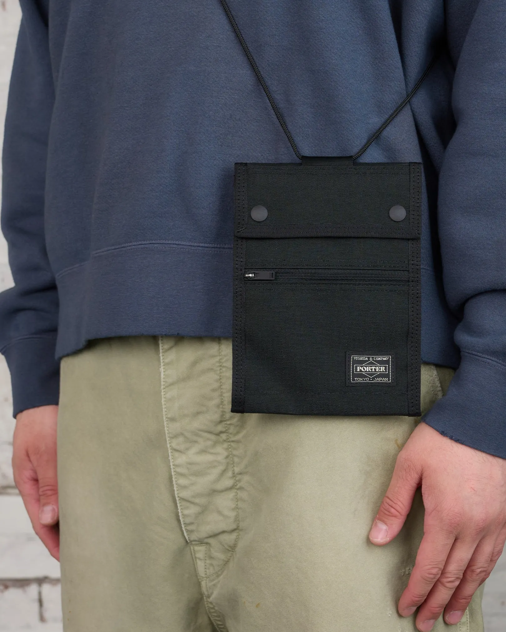 Small travel wallet that can be worn around the neck and or shoulders. Internal zip pockets help keep belongings organized and safe during everyday usage. Cordura nylon, which has excellent strength and lightness, is twisted with polyester called X-PLY and arranged in a bias direction (diagonal to the fabric) to create an extremely durable woven fabric.