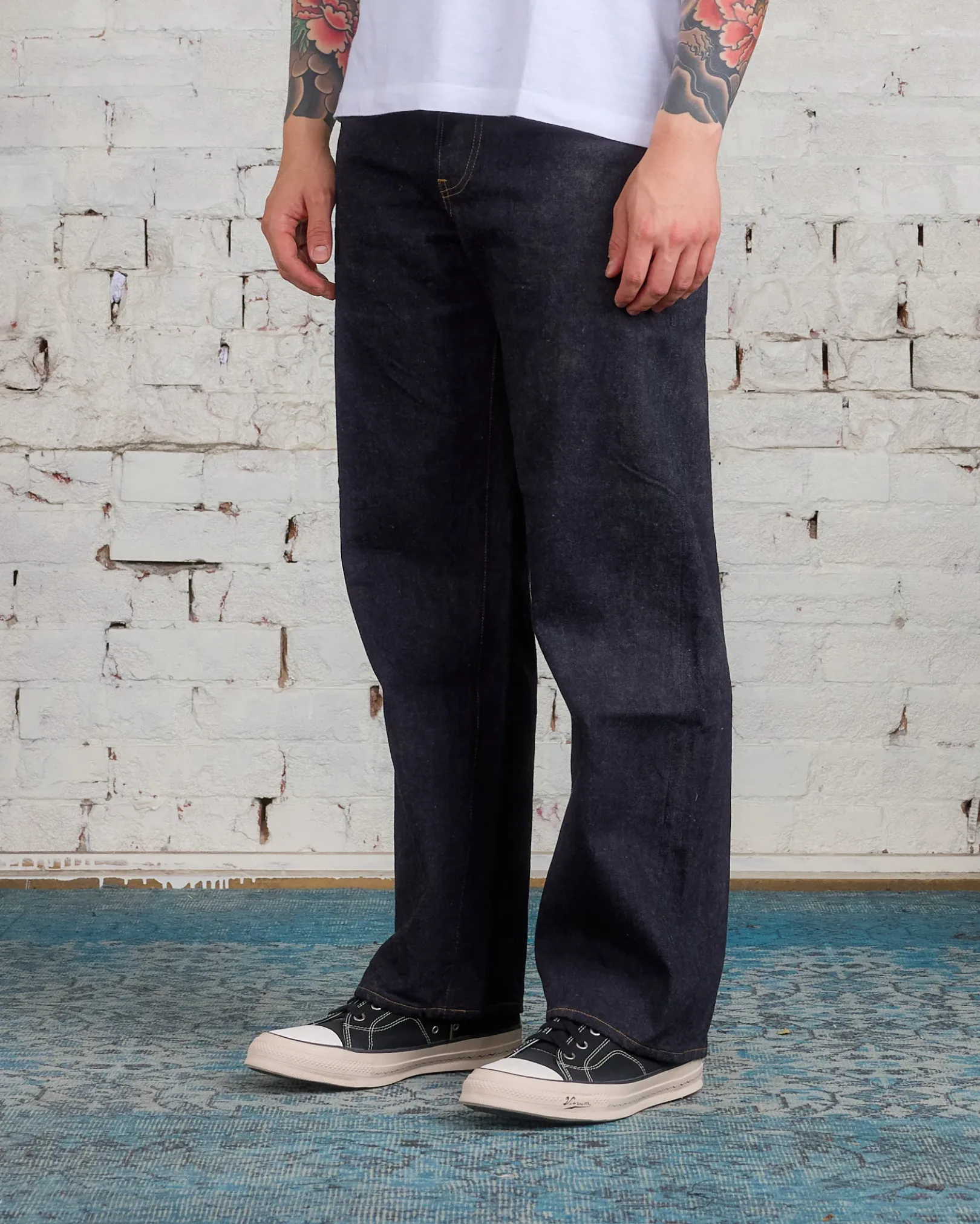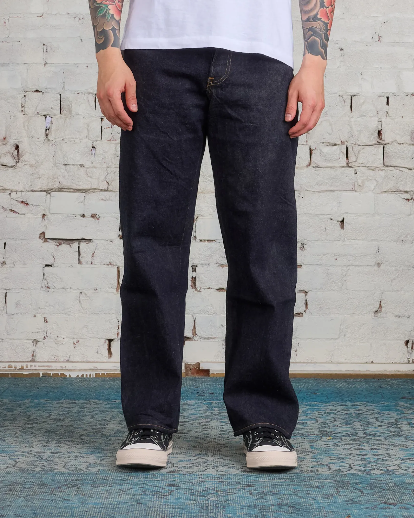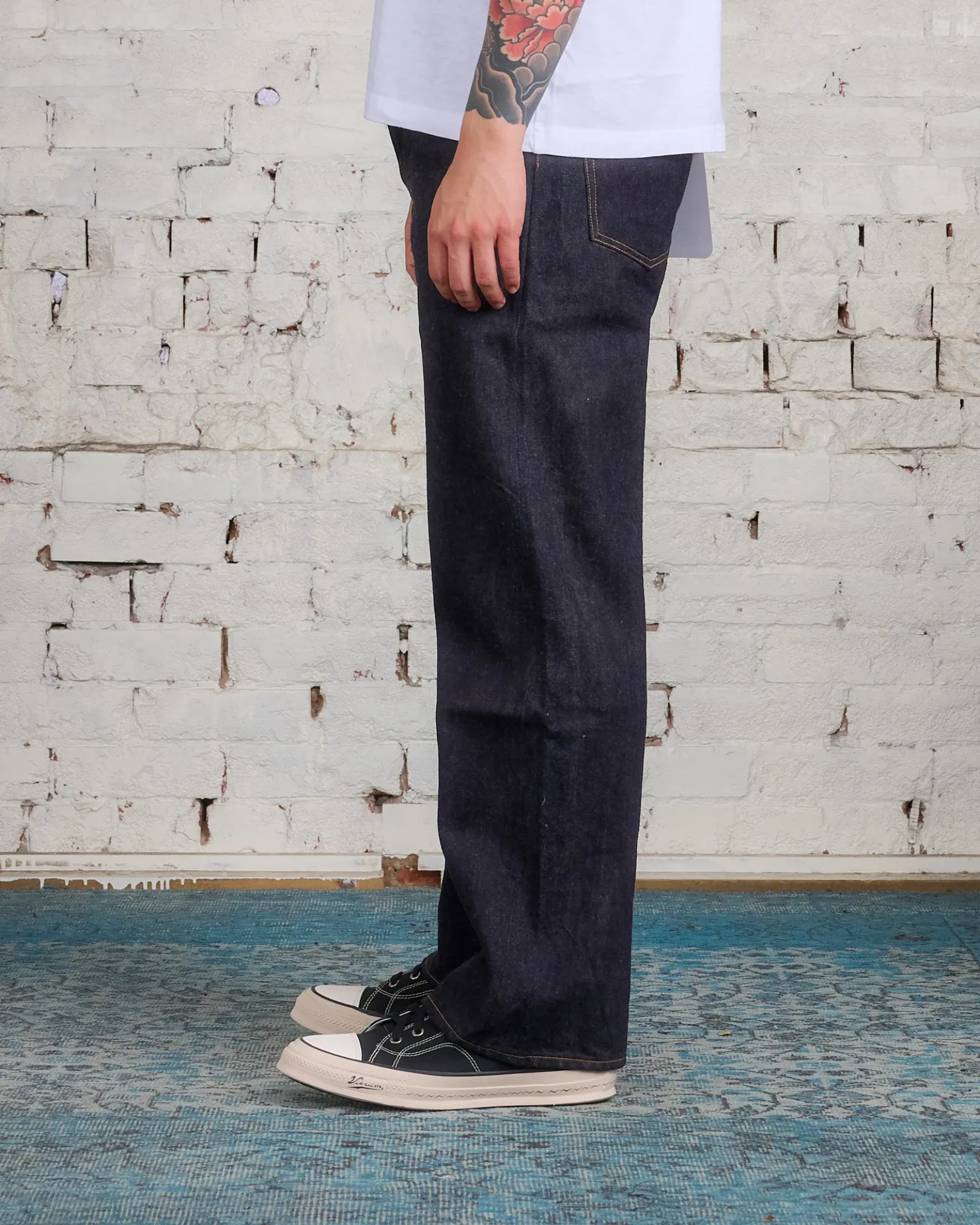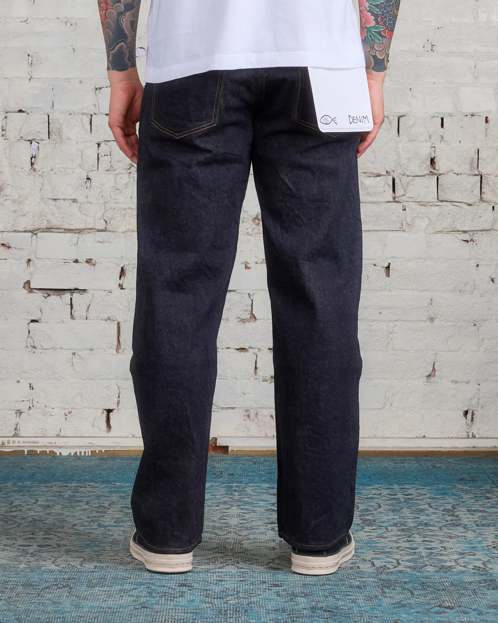 Items that are finished with Natural Dye will experience different textural finishes where no two are alike. Also, there may be pairs of denim that have mud left on the finished garment as a result of the treatment. When washing there may be slight shrinkage. They’re literally dyed in mud.