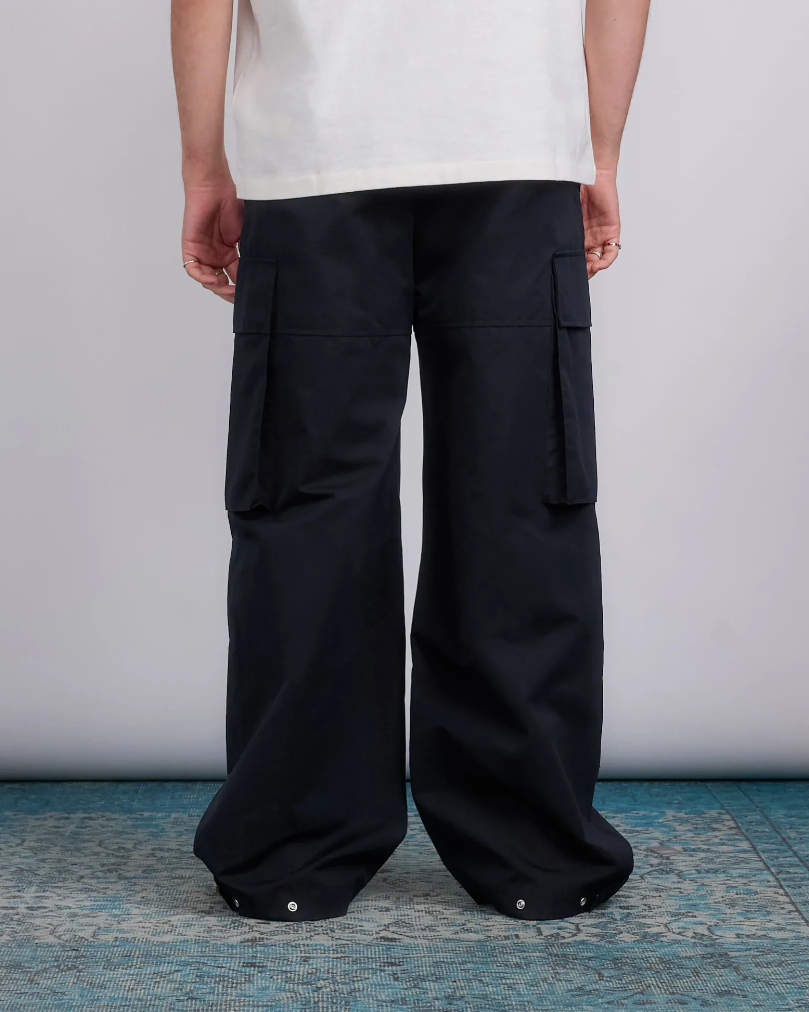 Oversized-fit cotton silk cargo pants with removable belt detailing