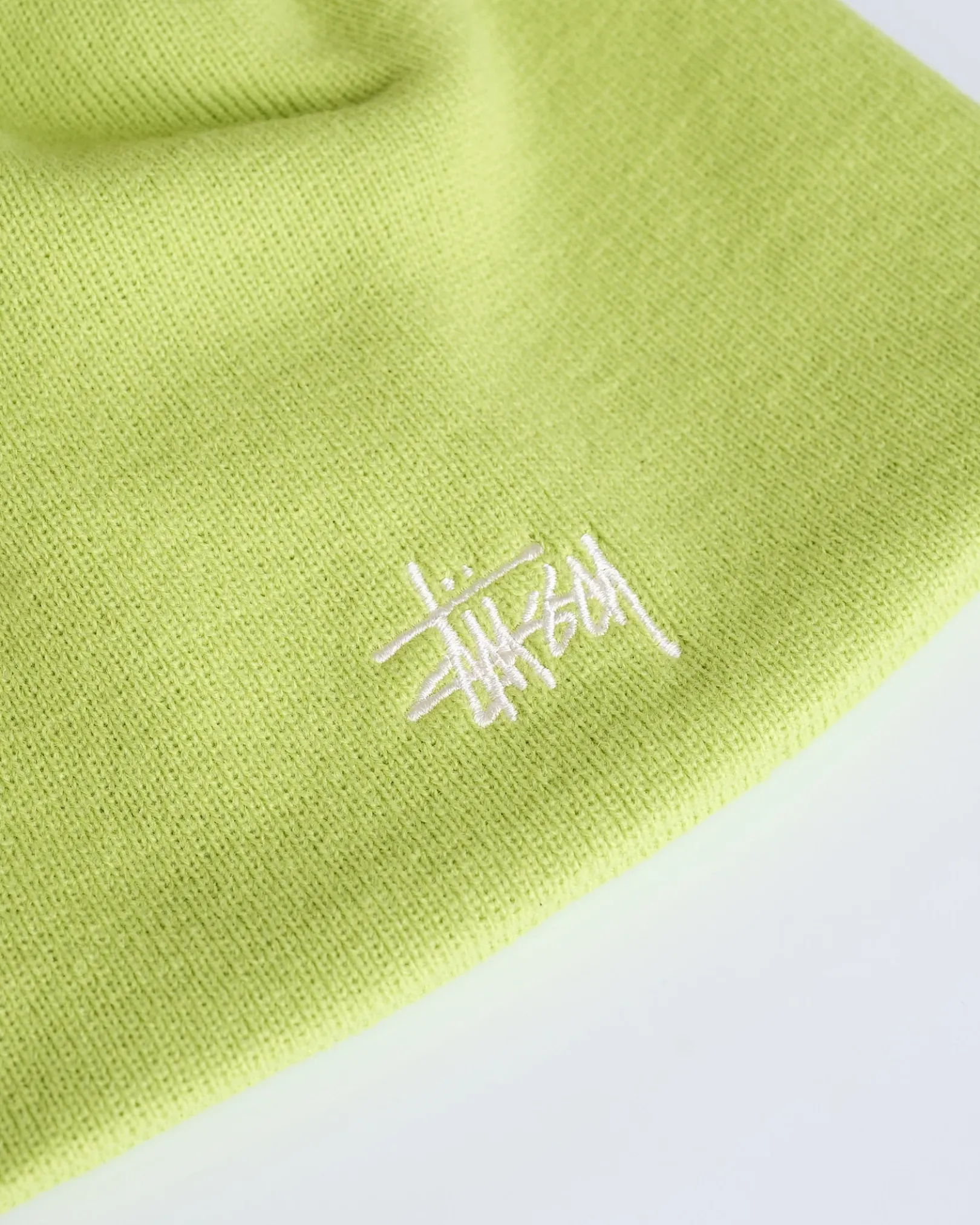 Fitted skullcap beanie in a fine guage knit. Stüssy basic stock logo embroidery at the front.