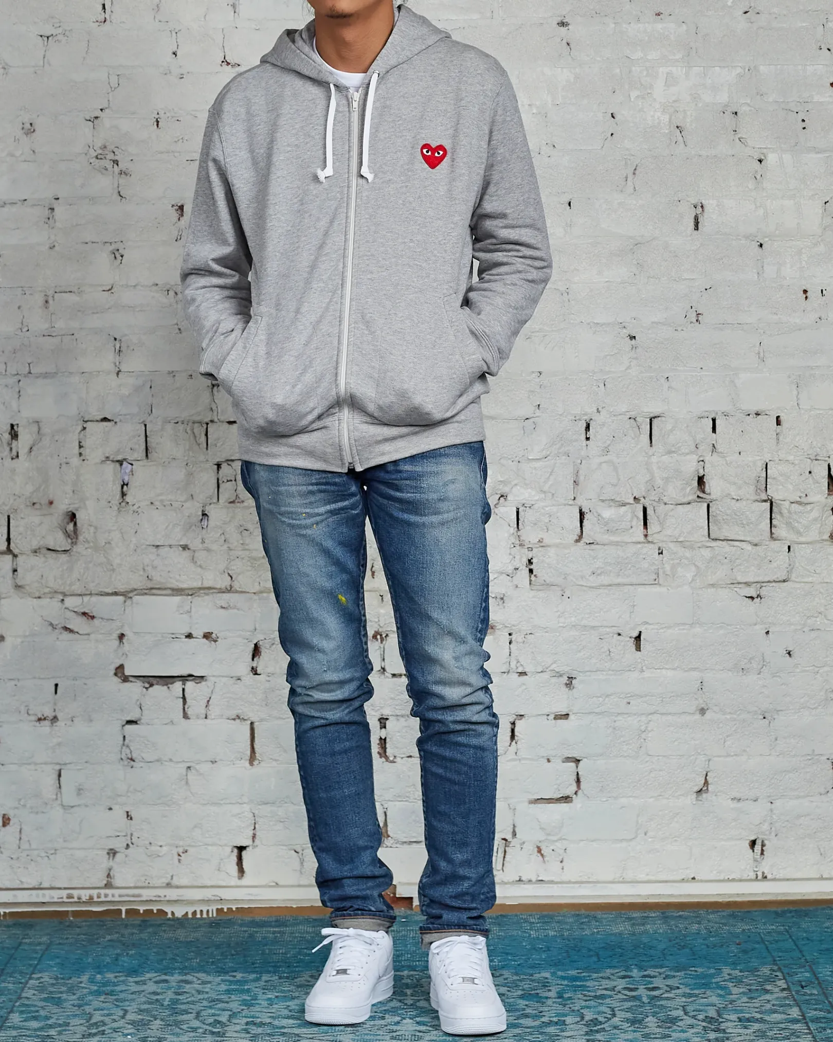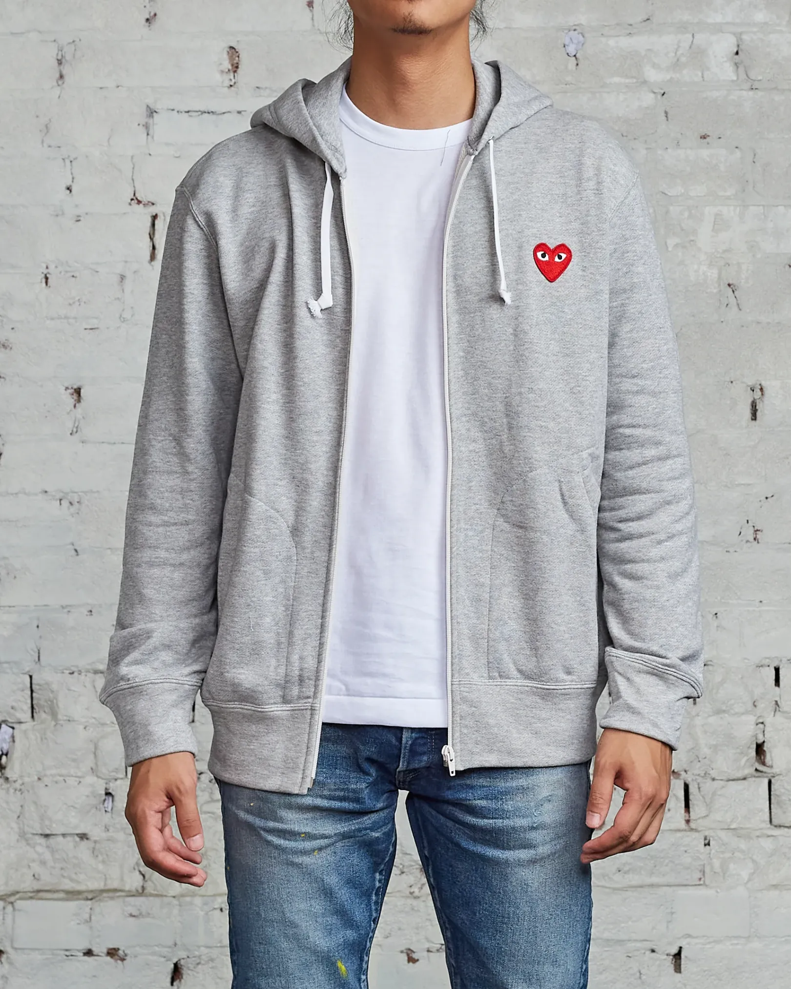 Outlet Comme des Garçons PLAY Red Heart Zip Hooded Sweatshirt Grey