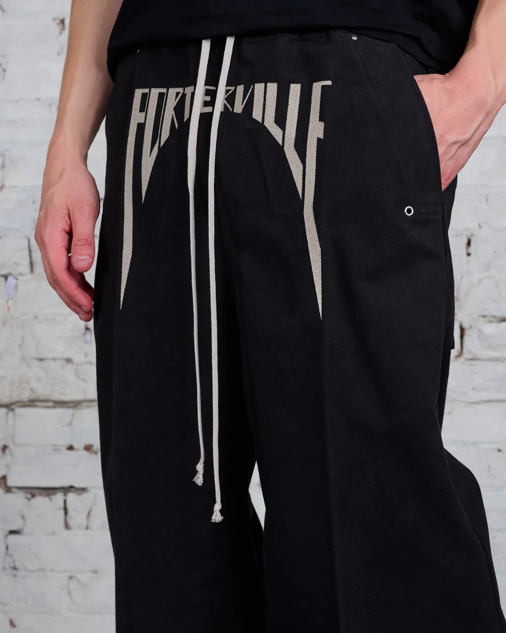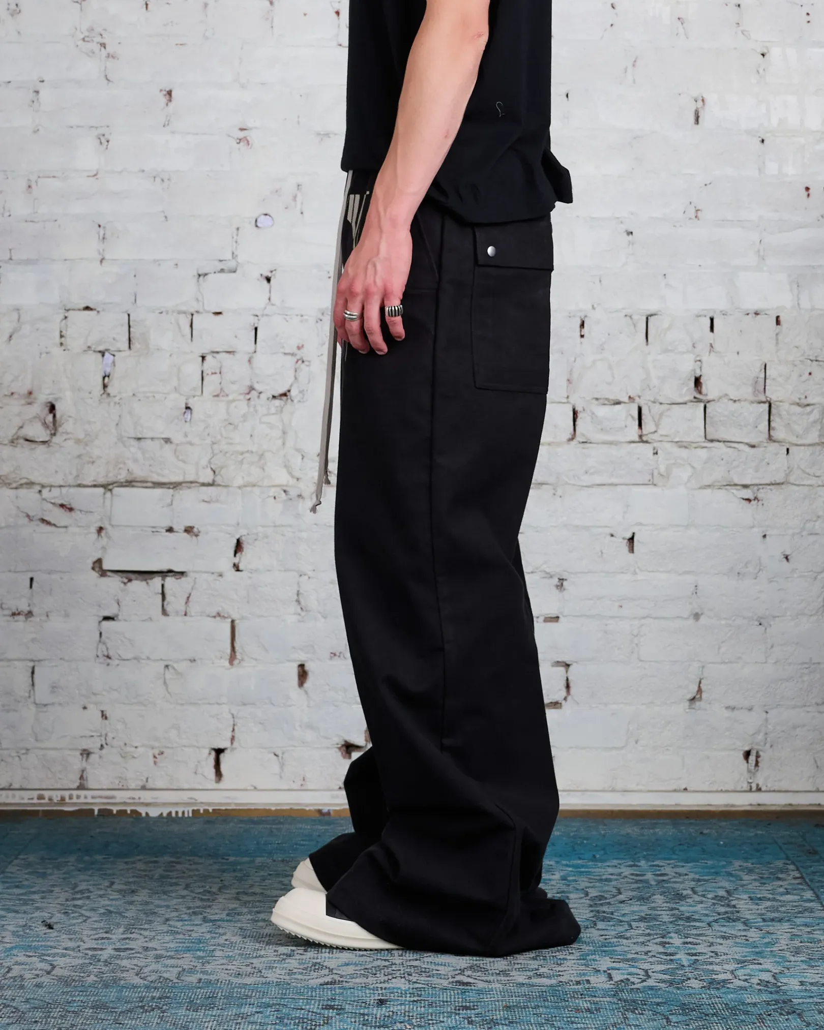 Rick Owens FW24 PORTERVILLE runway porterville wide bela pants in black/pearl brushed heavy twill
