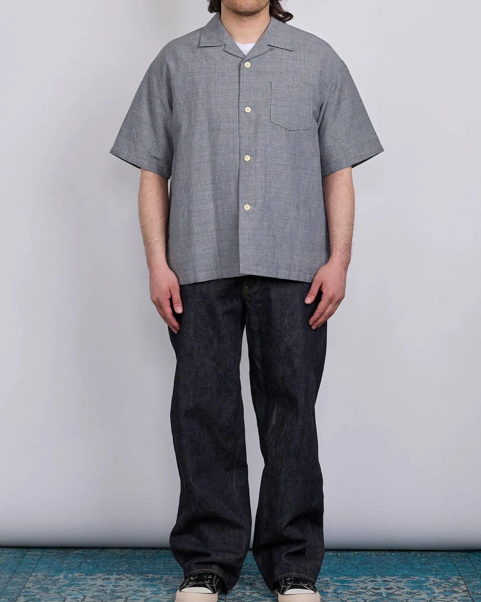 The visvim Wallis Down Button Shirt S/S in Santome Grey is a unique fusion of traditional craftsmanship and modern utility. Constructed from visvim’s original Santome fabric, a wool-linen blend inspired by traditional Japanese textiles, this short sleeve shirt is insulated with white goose down for lightweight warmth. It features a one-wash treatment for a lived-in feel and is finished with custom water buffalo buttons for an added touch of refinement.