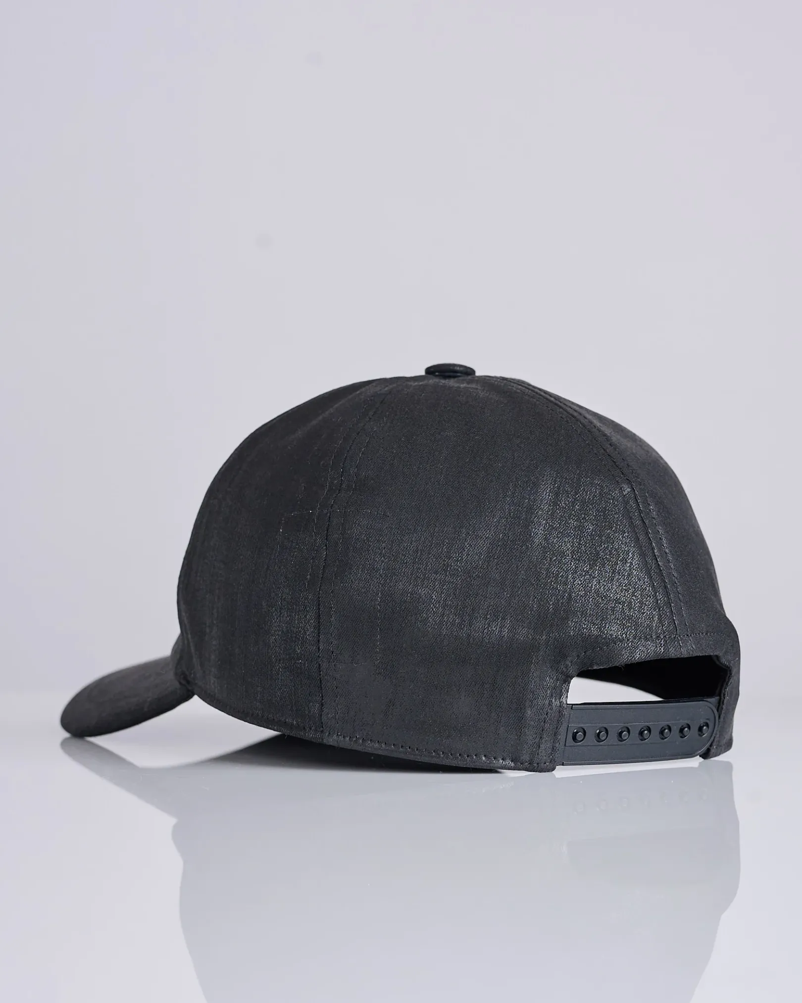 drkshdw ss25 hollywood baseball cap in black/pearl overdyed foil stretch denim