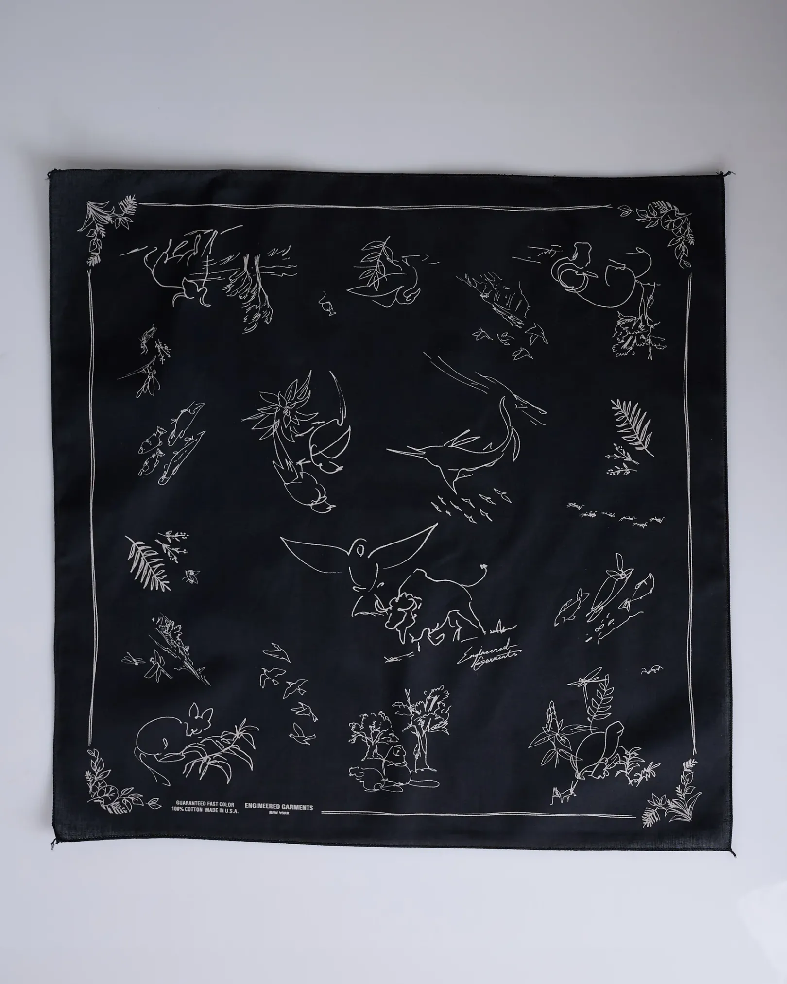 The Printed Bandana by Engineered Garments offers its seasonal print. The graphic follows the hand-drawn works from Engineered Garments’ Spring/Summer 2025 collection.