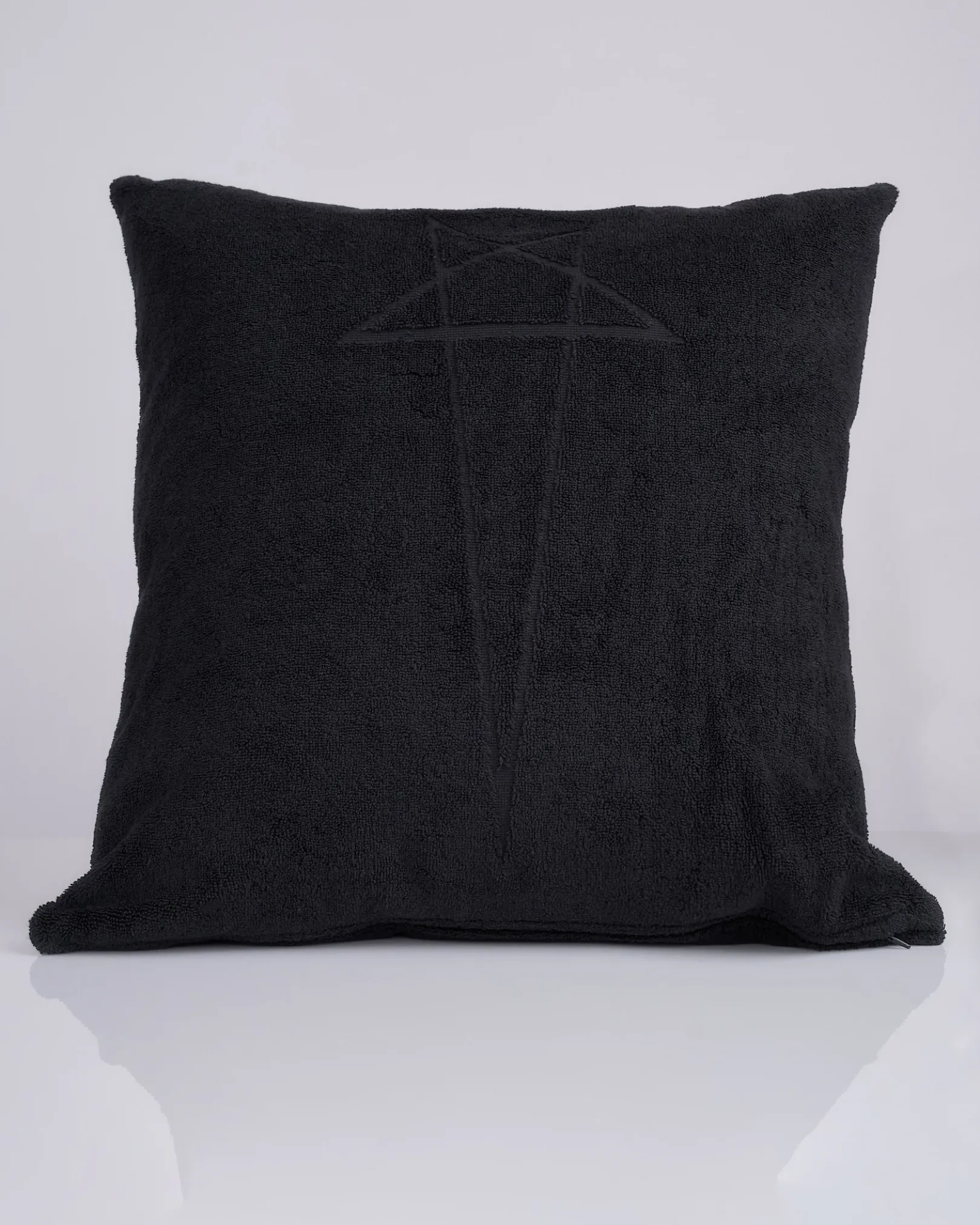 This heavyweight cotton beach pillow is made using a 600g fabric. It has a soft, spongy hand feel and a pentagram motif.