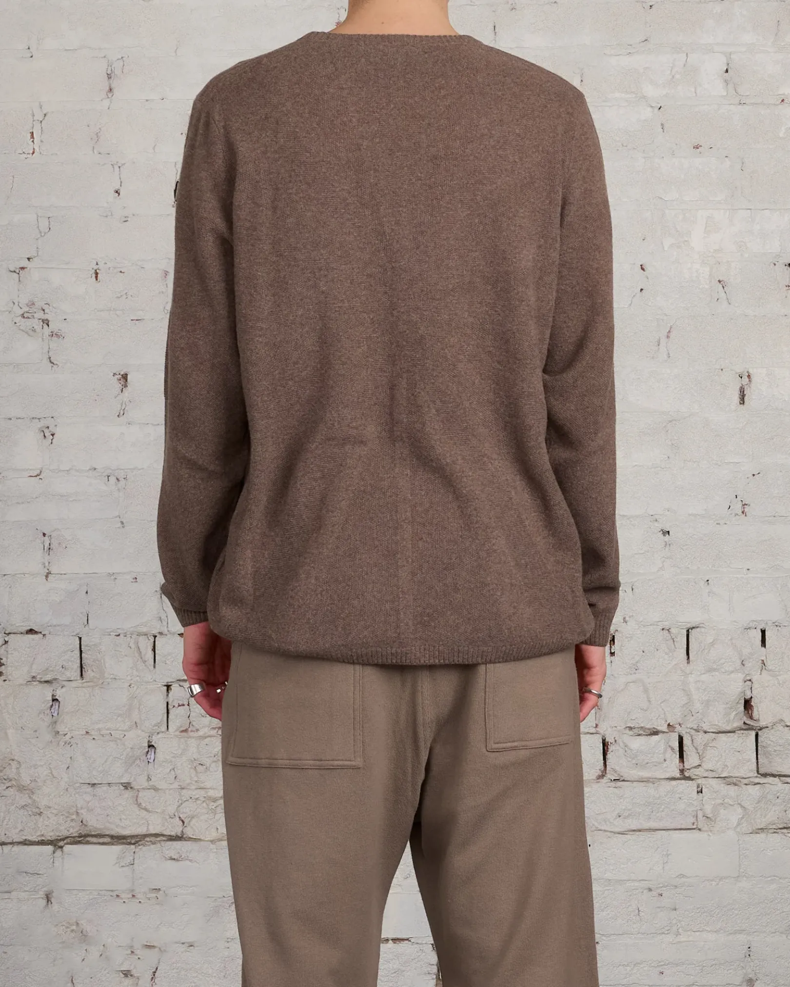 This jumbo crewneck sweat is hip length with long sleeves and an oversized fit. It has a ribbed round neck, cuffs and hem and signature level shoulder seams and seam running down the centre back spine. It has the Moncler + Rick Owens embroidered logo patch on the upper left arm.