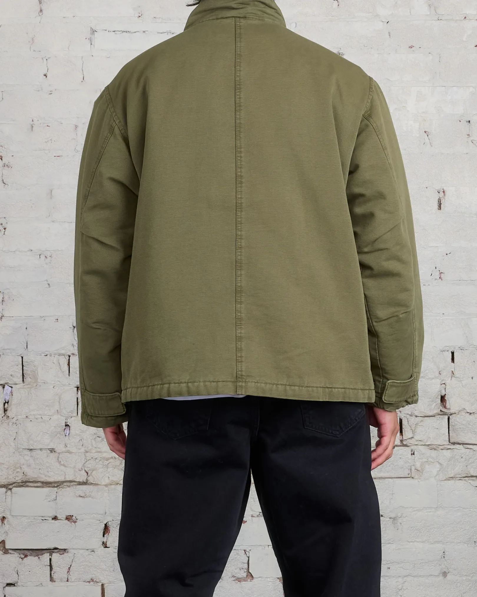 Relaxed fit field jacket in cotton canvas. Features lightweight insulation, front patch pockets and zipped interior pockets. Stüssy basic stock logo embroidered at the left chest.