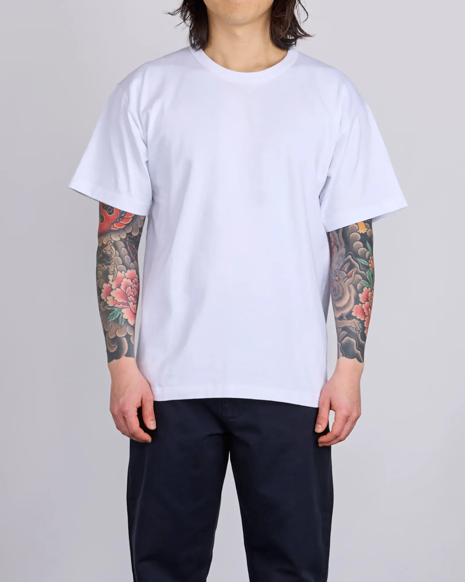 A loose fitting t-shirt cut from an organic heavyweight cotton jersey. It features ribbed binding at the neck and twin needle stitching details throughout. Finished with a branded hang loop at the back neck.