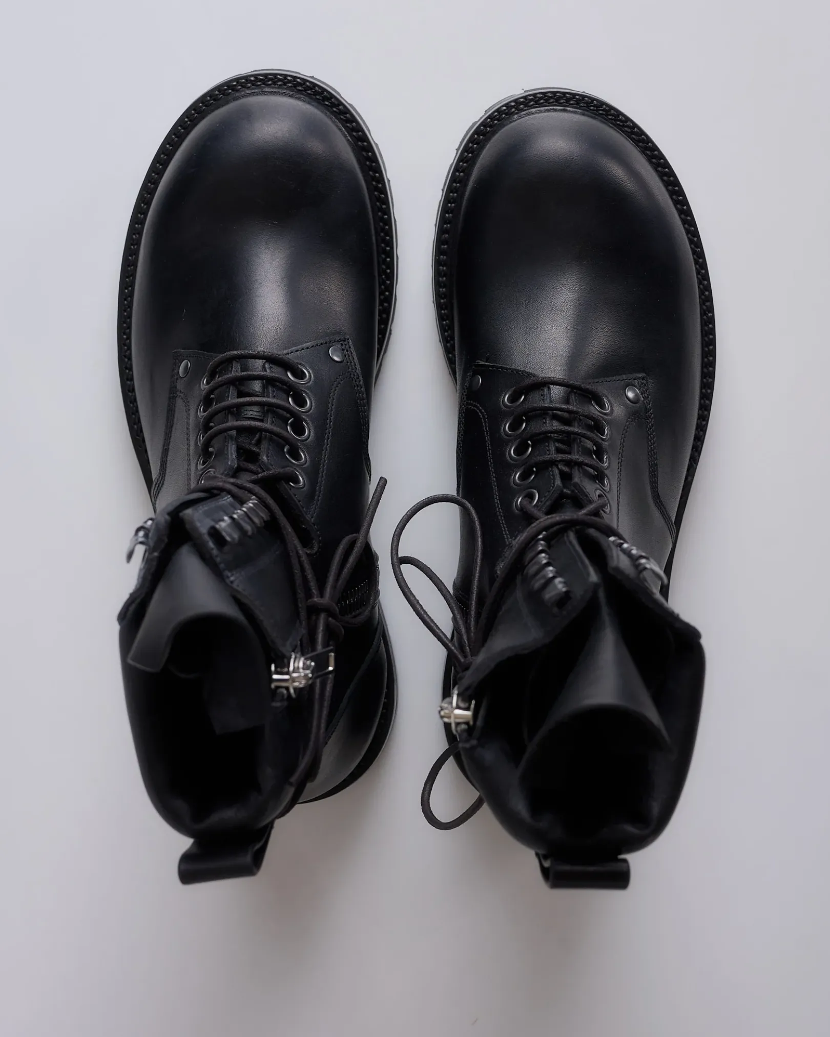 Rick Owens SS25 HOLLYWOOD army laced boot in black groppone cow leather