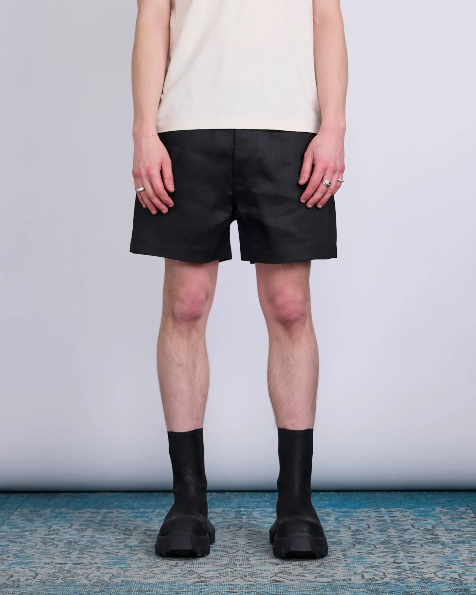 Rick Owens SS25 HOLLYWOOD geth cutoffs in black linen twill