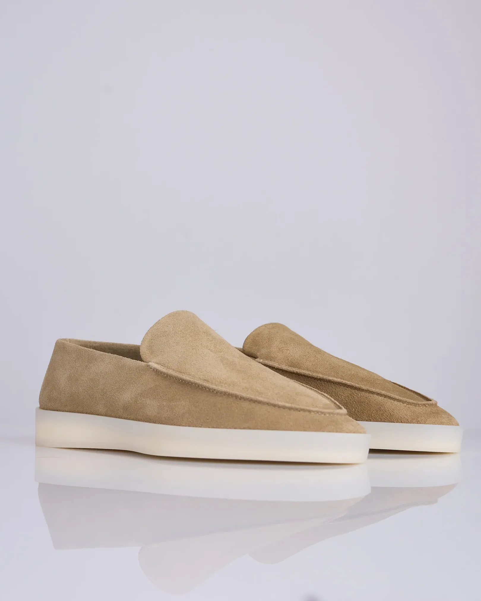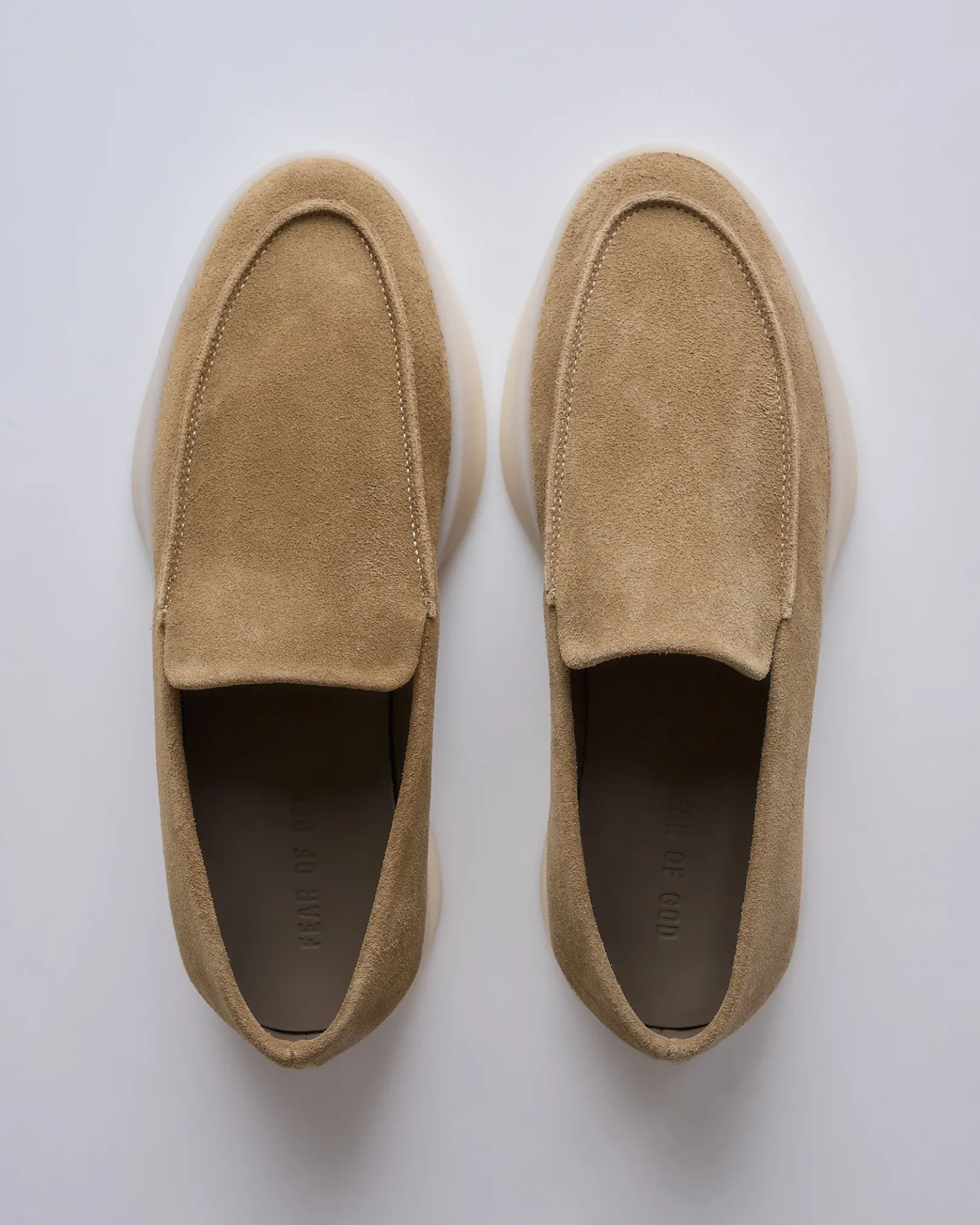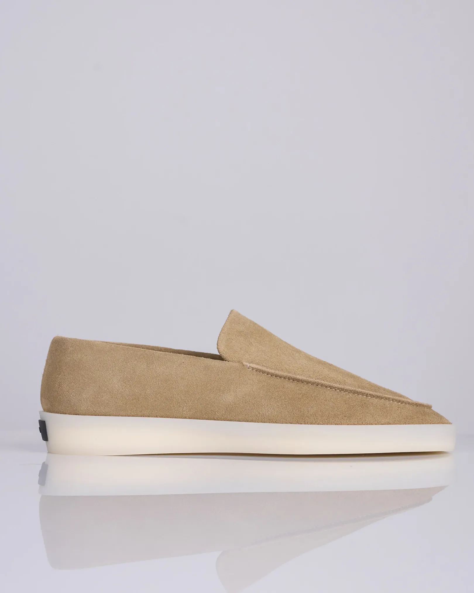 Crafted in Italy, the loafer is a classic piece in the Fear of God footwear collection. Minimalist branding is evident in the black rubberized Fear of God label on the heel.