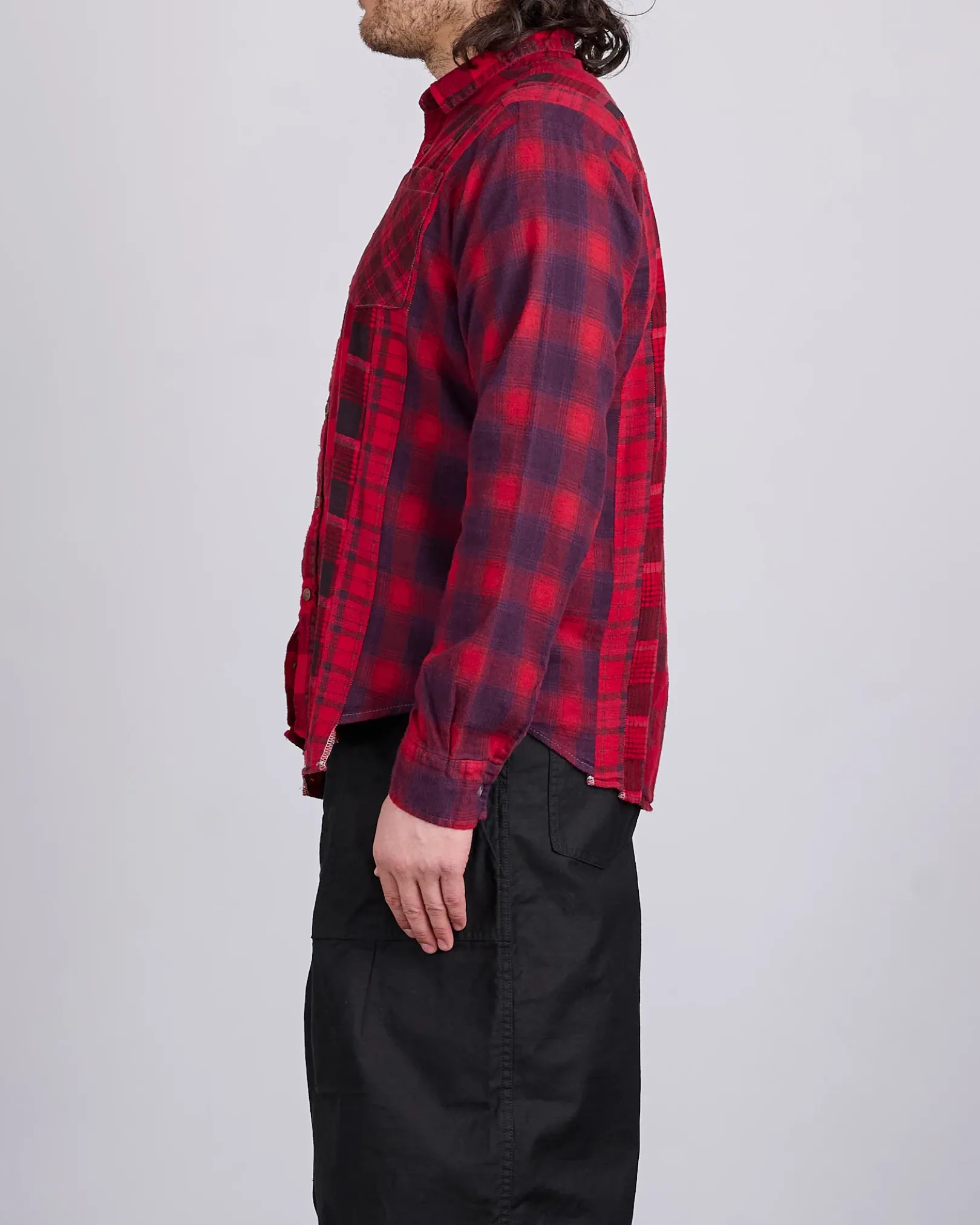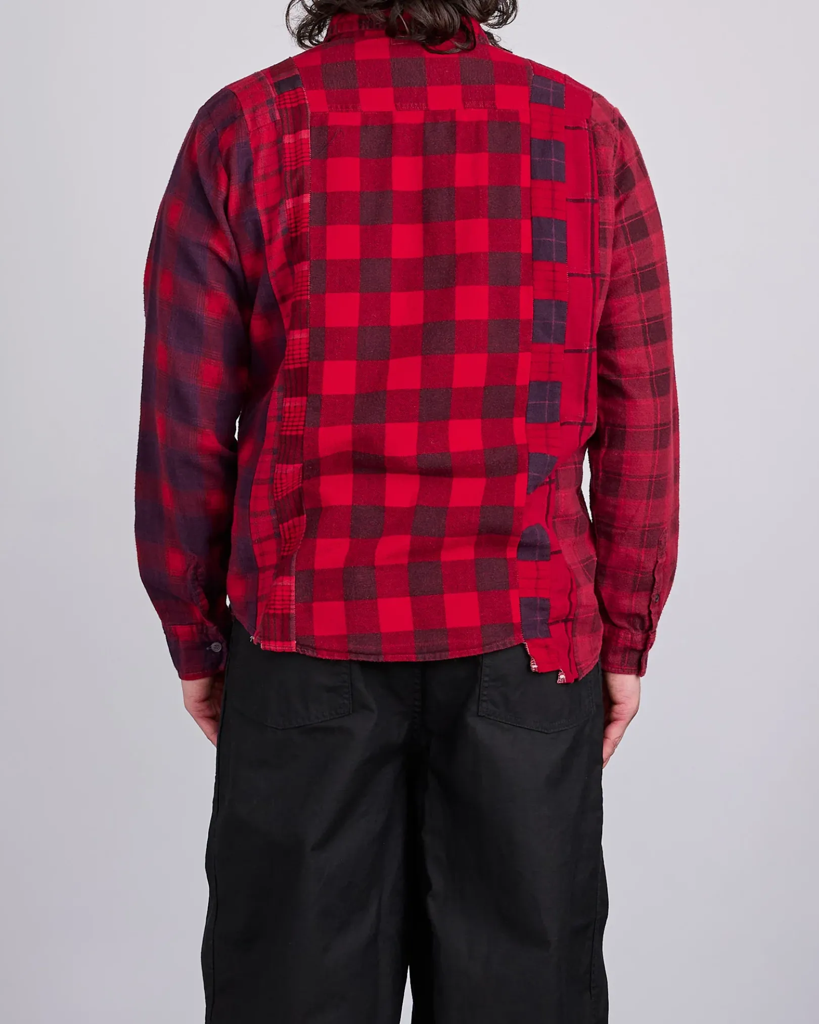 The Rebuild by Needles 7-Cuts Flannel Shirt returns in a bold red overdye, crafted from seven vintage flannel shirts sewn together to create a completely one-of-a-kind piece. With its distinctive paneling and rich color treatment, each shirt offers its own unique look—no two are alike.