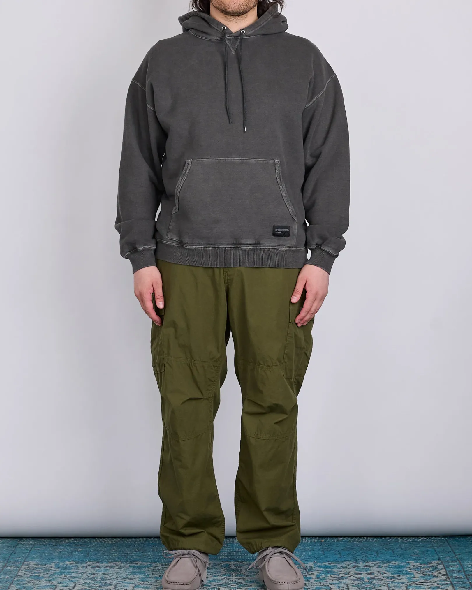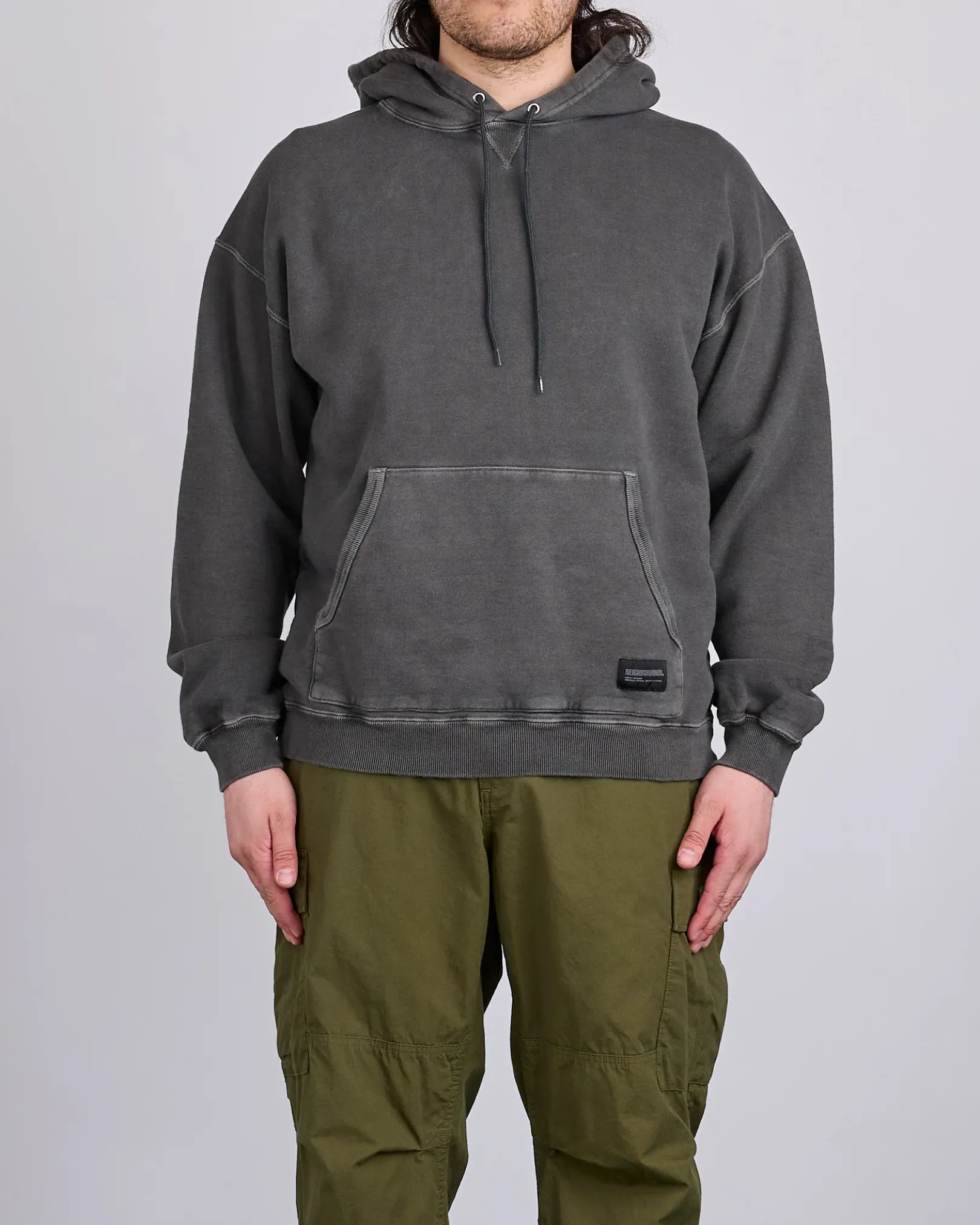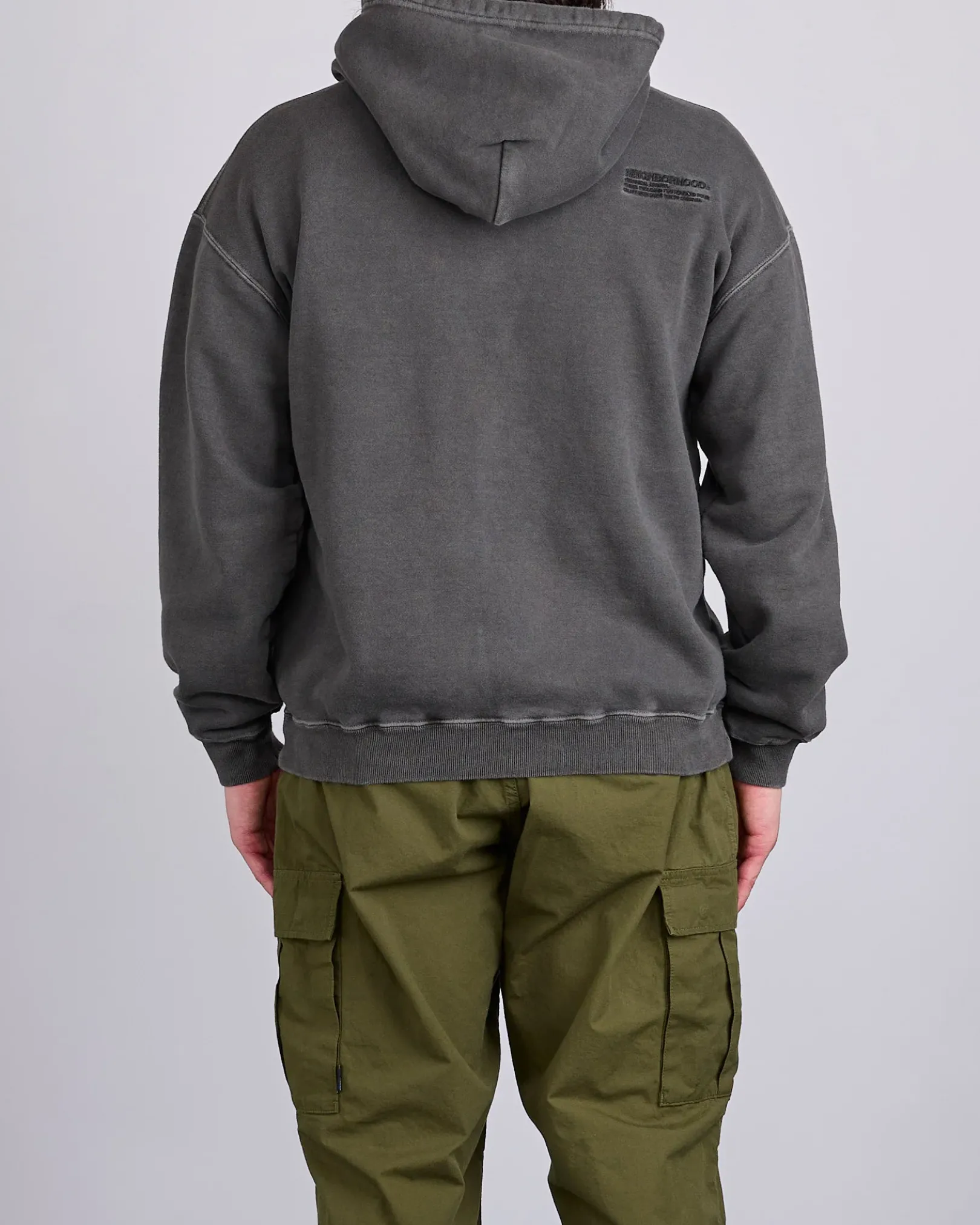 Crafted from thick, cotton-lined fabric, this pullover hoodie by Neighborhood features a pigment-dye finish that gives it a soft, vintage-inspired look. A V-shaped gusset at the neck adds classic athletic detailing, while an embroidered logo at the back shoulder offers subtle branding. Finished with original cell-tip drawcords, a clip tag at the side seam, and a relaxed, drop-shoulder fit for everyday comfort.