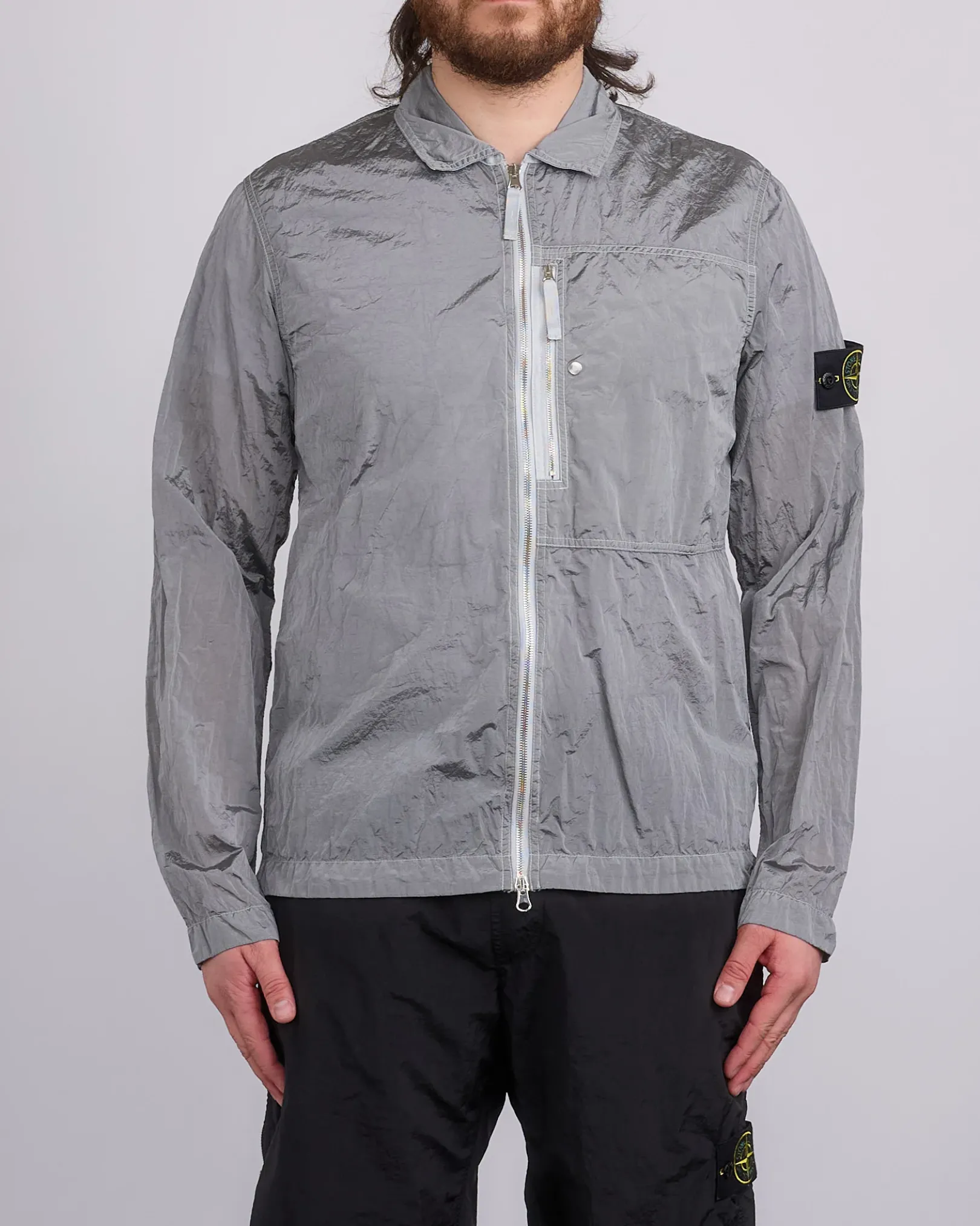 Large chest patch pocket with vertical zipper and snap fastening. Stone Island badge on the left sleeve. Tightening snap at cuffs. Yoke on back. Two-way zipper fastening. Regular fit.