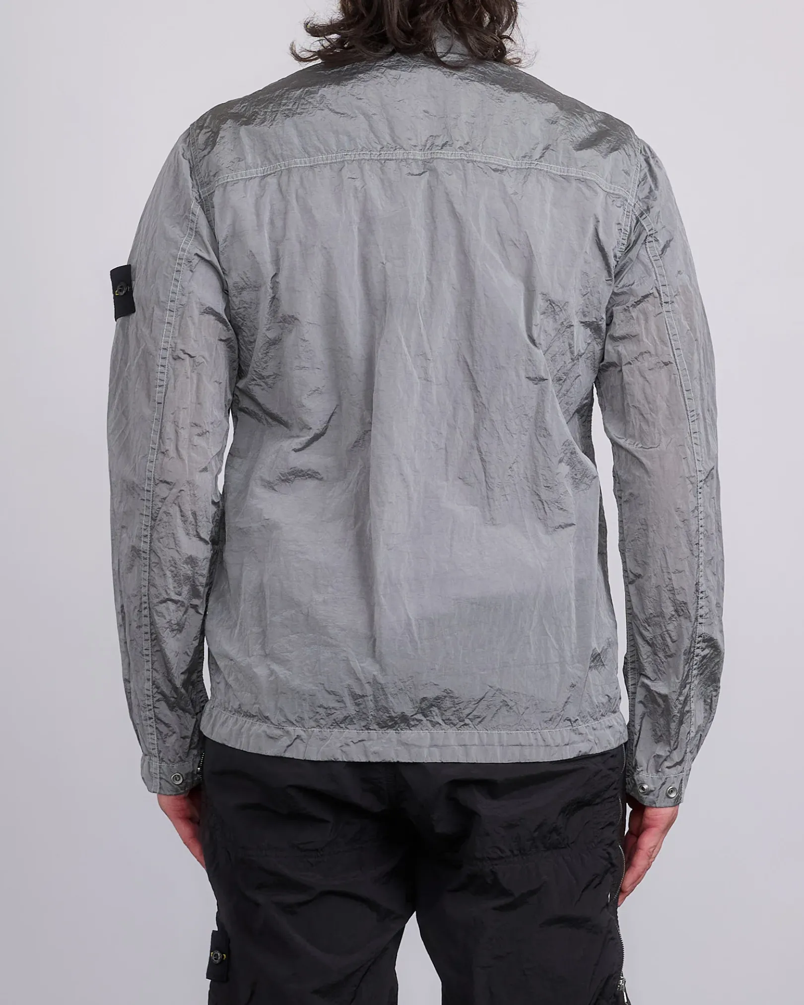 Overshirt made in a new responsible Stone Island iridescent Nylon Metal fabric. The evolution of this iconic fabric sees the use of ECONYL® regenerated yarns: the life-ended nylon, pre- and post-consumer, is recycled with a complex depolymerization process to create this fiber that features the same intrinsic characteristics of nylon from fossil raw material. The finished piece then undergoes an elaborate double-dye procedure.