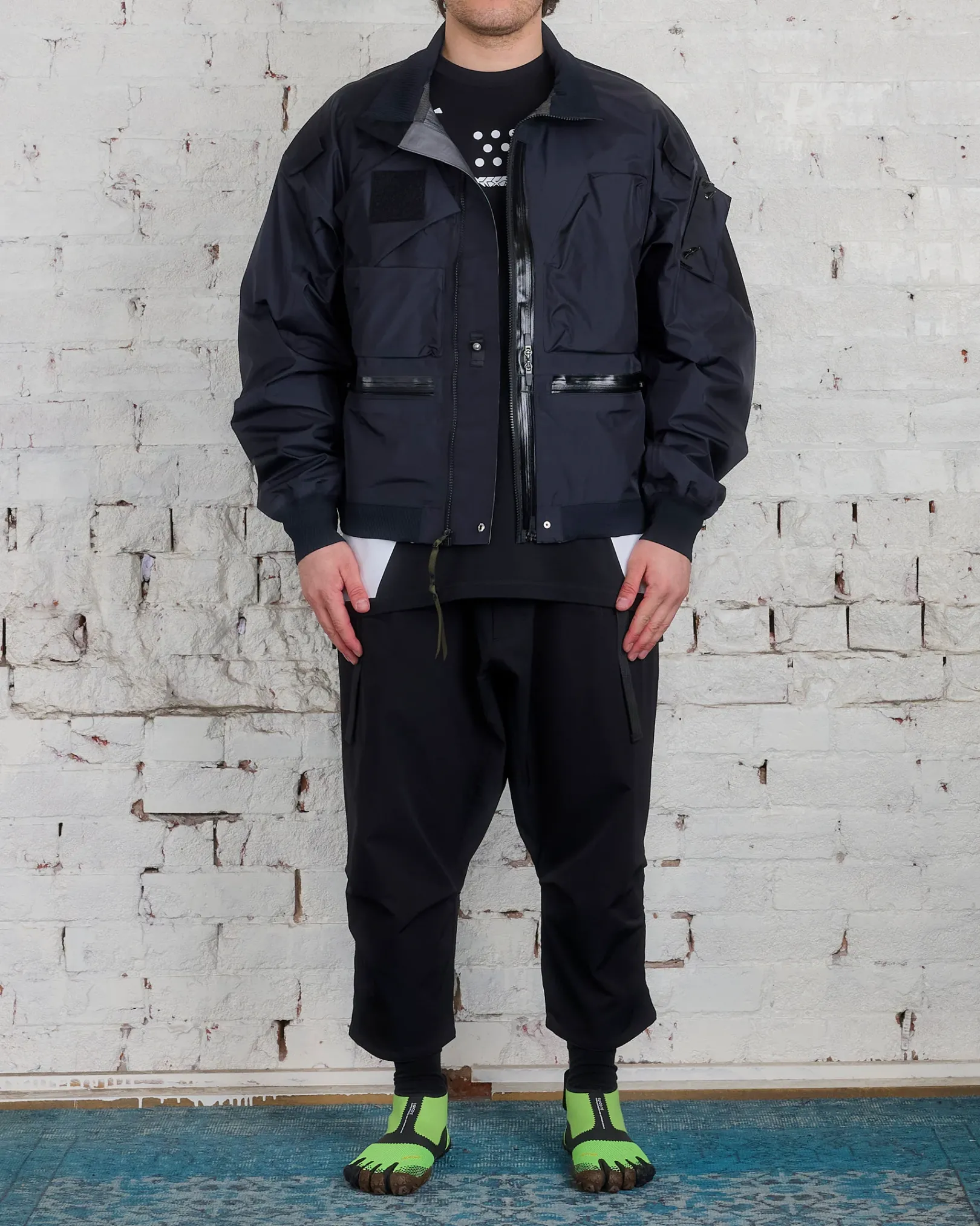 ‘My new jacket can hold the bridge.’ Demi-oversized blouson bomber with asymmetric Interopsǽ compatible pocket layout. Gore-Tex® 3L shell fabric and dimensional flex cuffs. Modular spikes on left shoulder pocket and Jacketslingǽ. Myriad use-driven technical details you will be discovering for years to come.