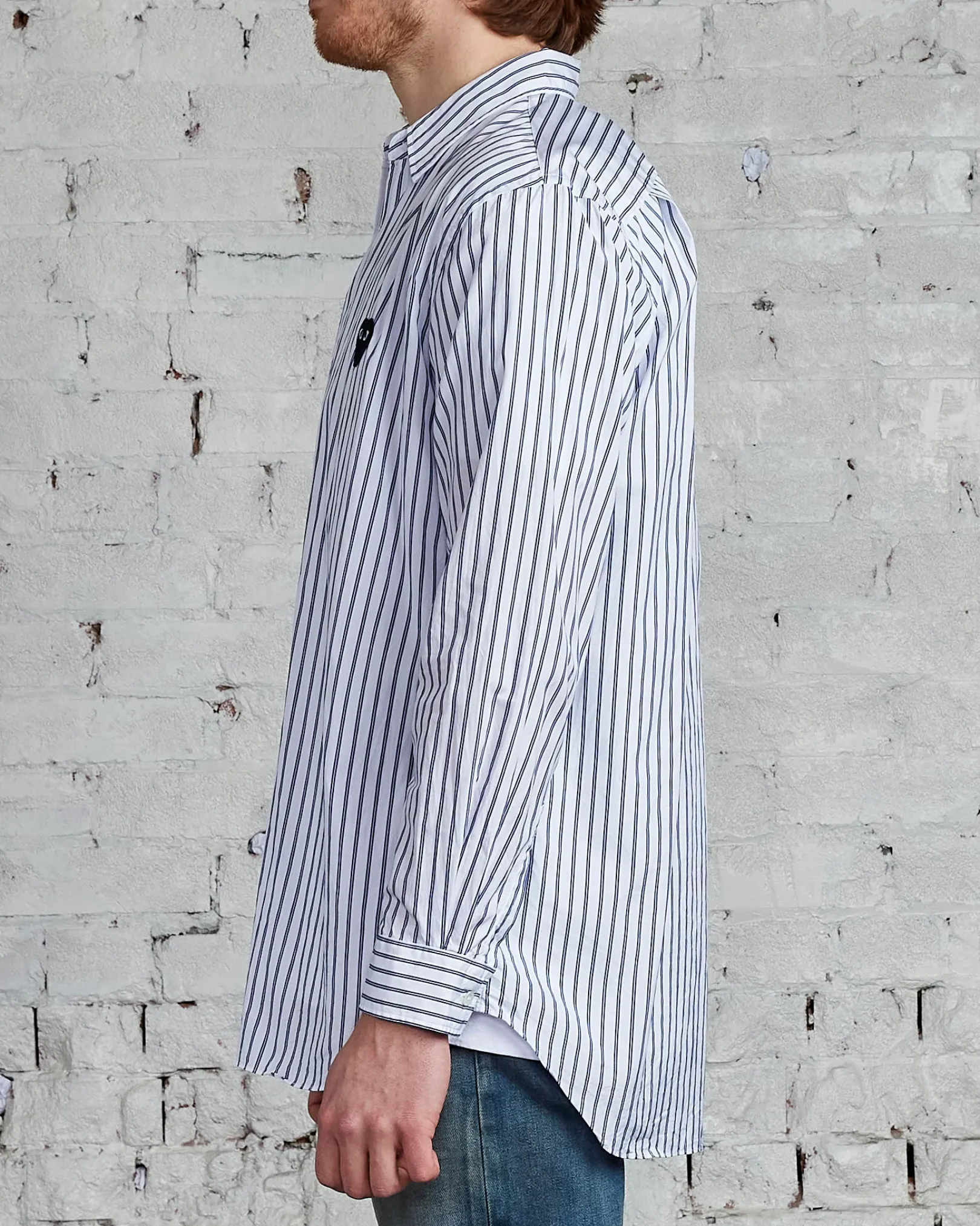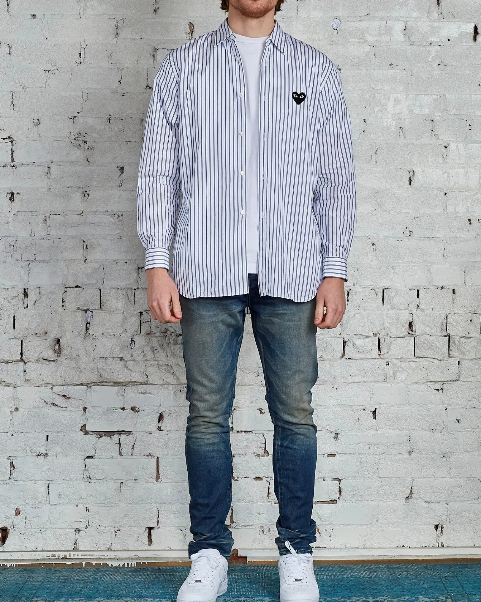 Discount Comme des Garçons PLAY Black Heart Striped Long Sleeve Button Shirt Blue