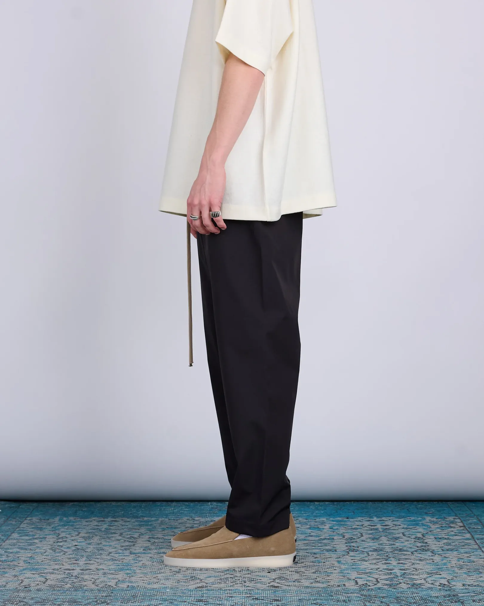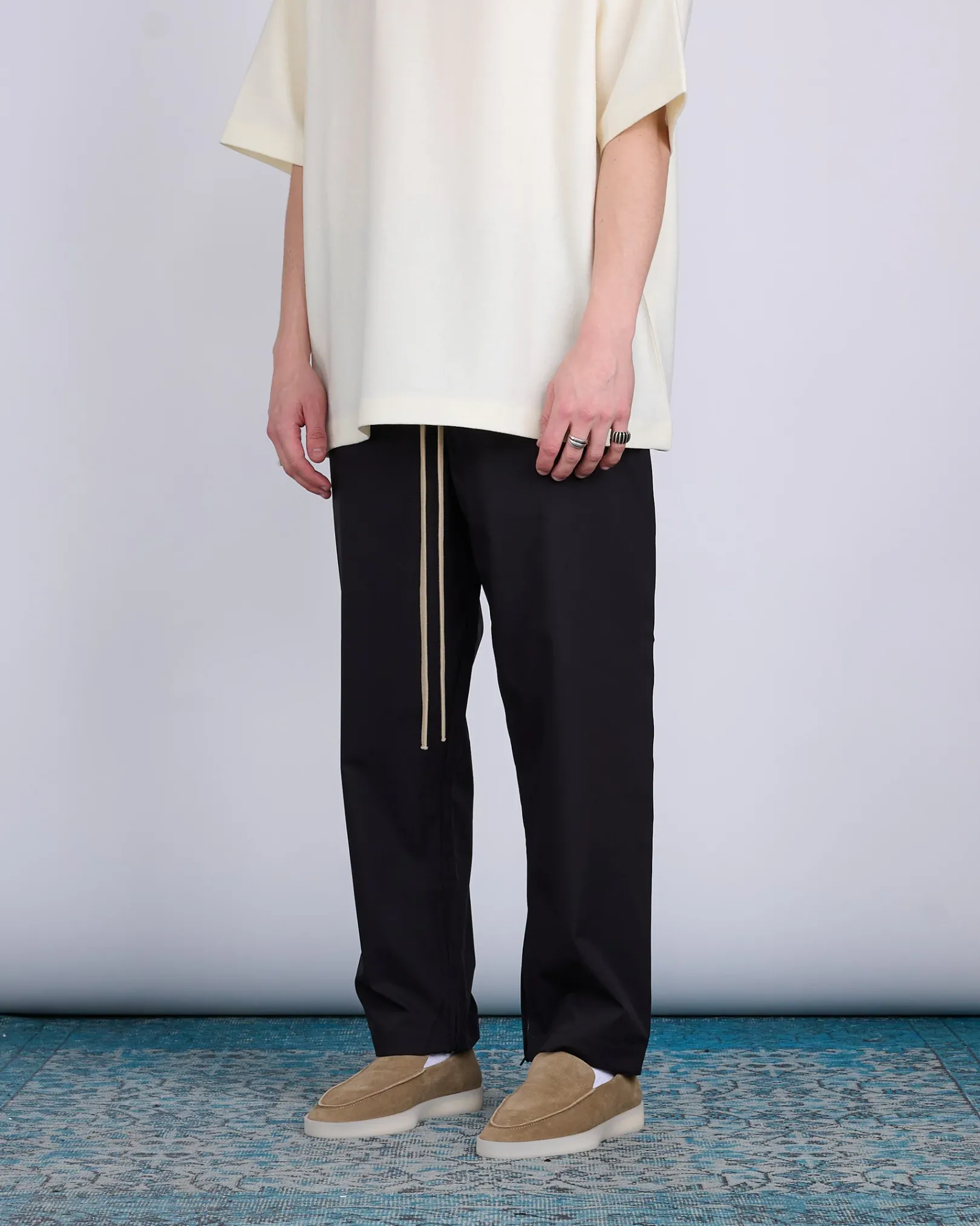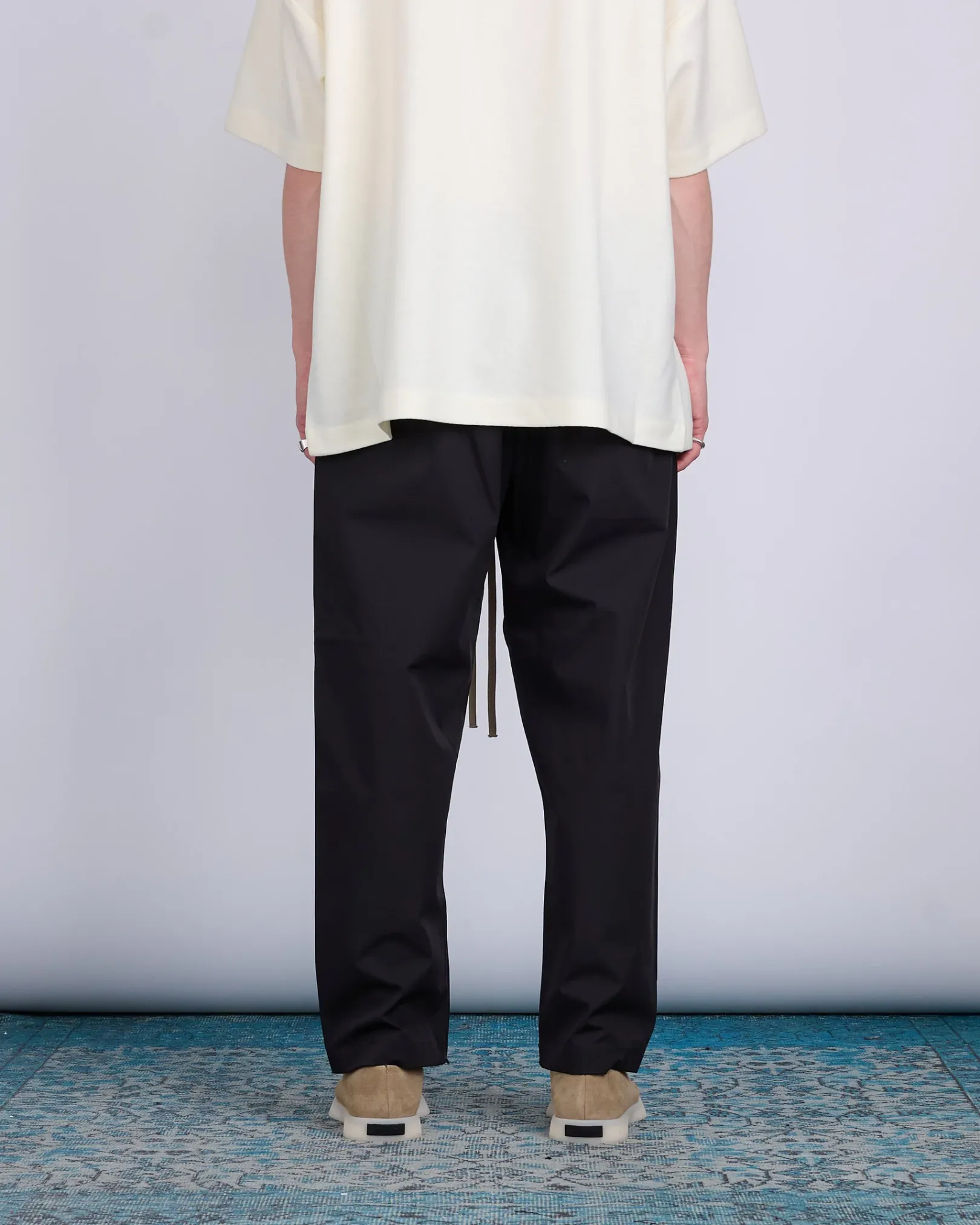 The Track Pant is made in Italy from a stretch nylon blend to balance sartorial polish and sportswear comfort. The piece is designed in a classic, straight-leg fit with ankle zippers for adjustability. Additional details include side pockets, encased elastic waistband, and elongated drawstrings. A Fear of God leather label is stitched at the corner front.
